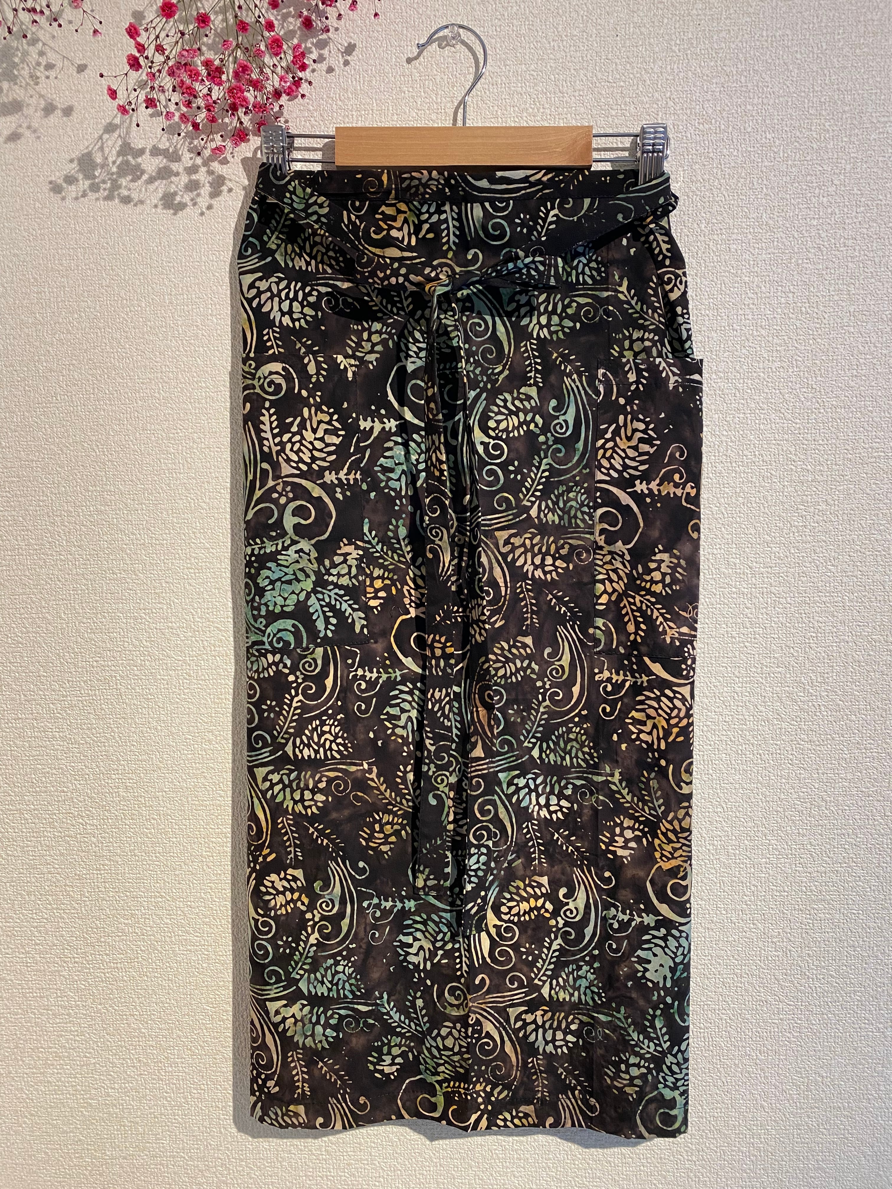 インドネシアのバリ島で製作されたチャップバティック(型押しろうけつ染め)の生地を使用した、オリジナルのサロンエプロンです。シンプルなデザインながら、ロングタイプでポケットが2つ付いており、実用性も兼ね備えています!