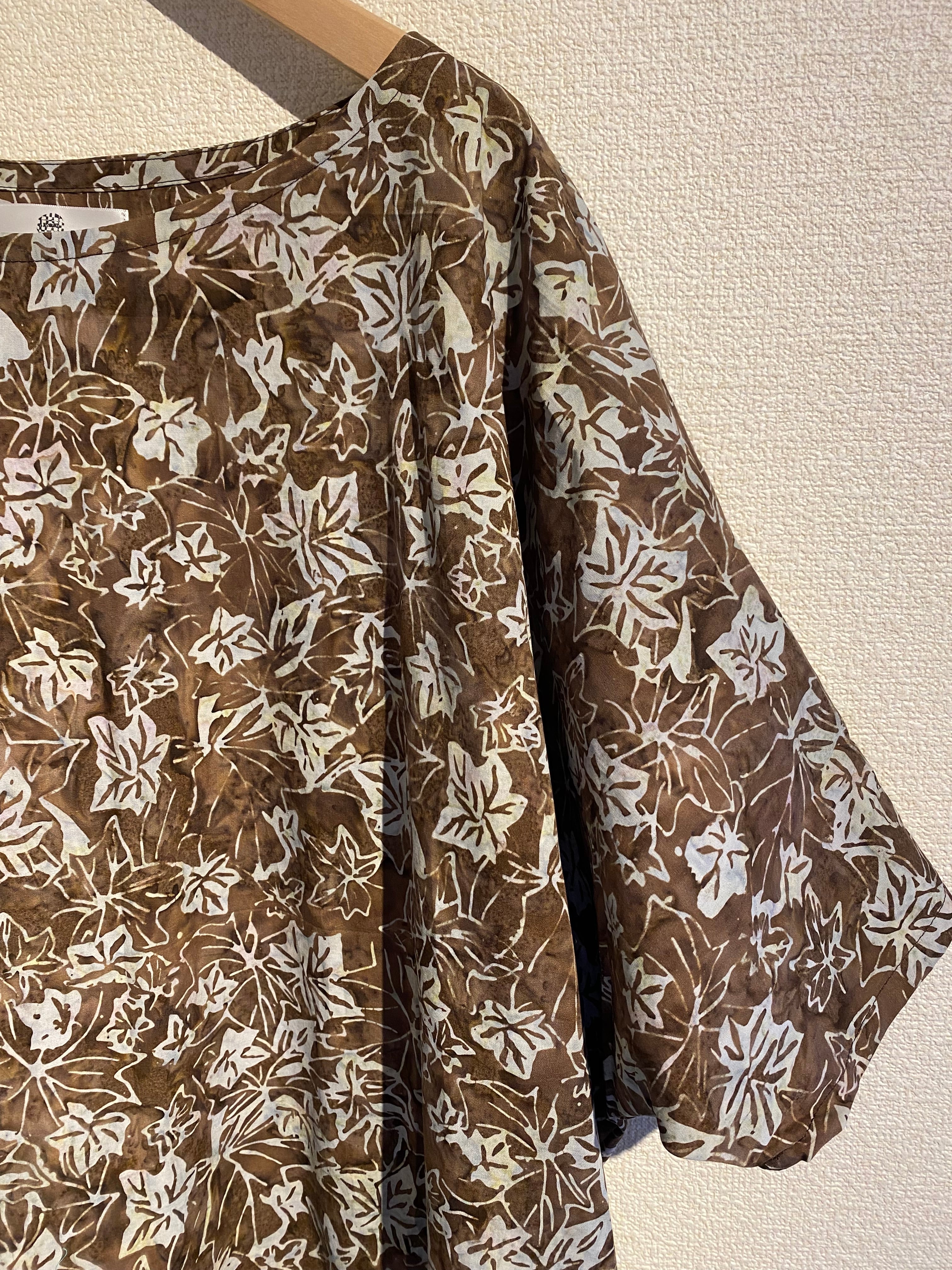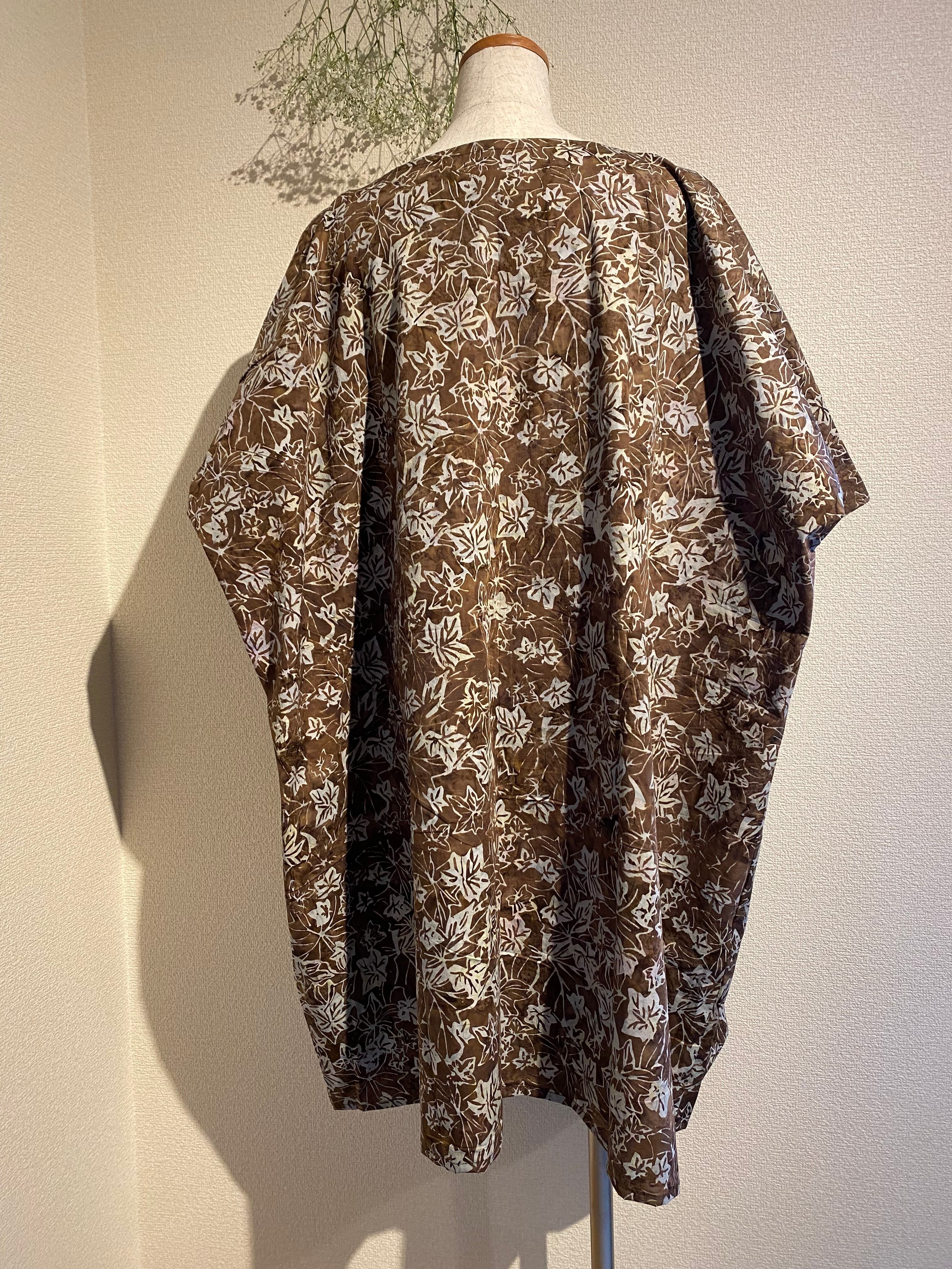 インドネシア、バリ島のチャップバティック(型押しろうけつ染め)を使用した生地でオリジナルチュニックドレスを制作しました!