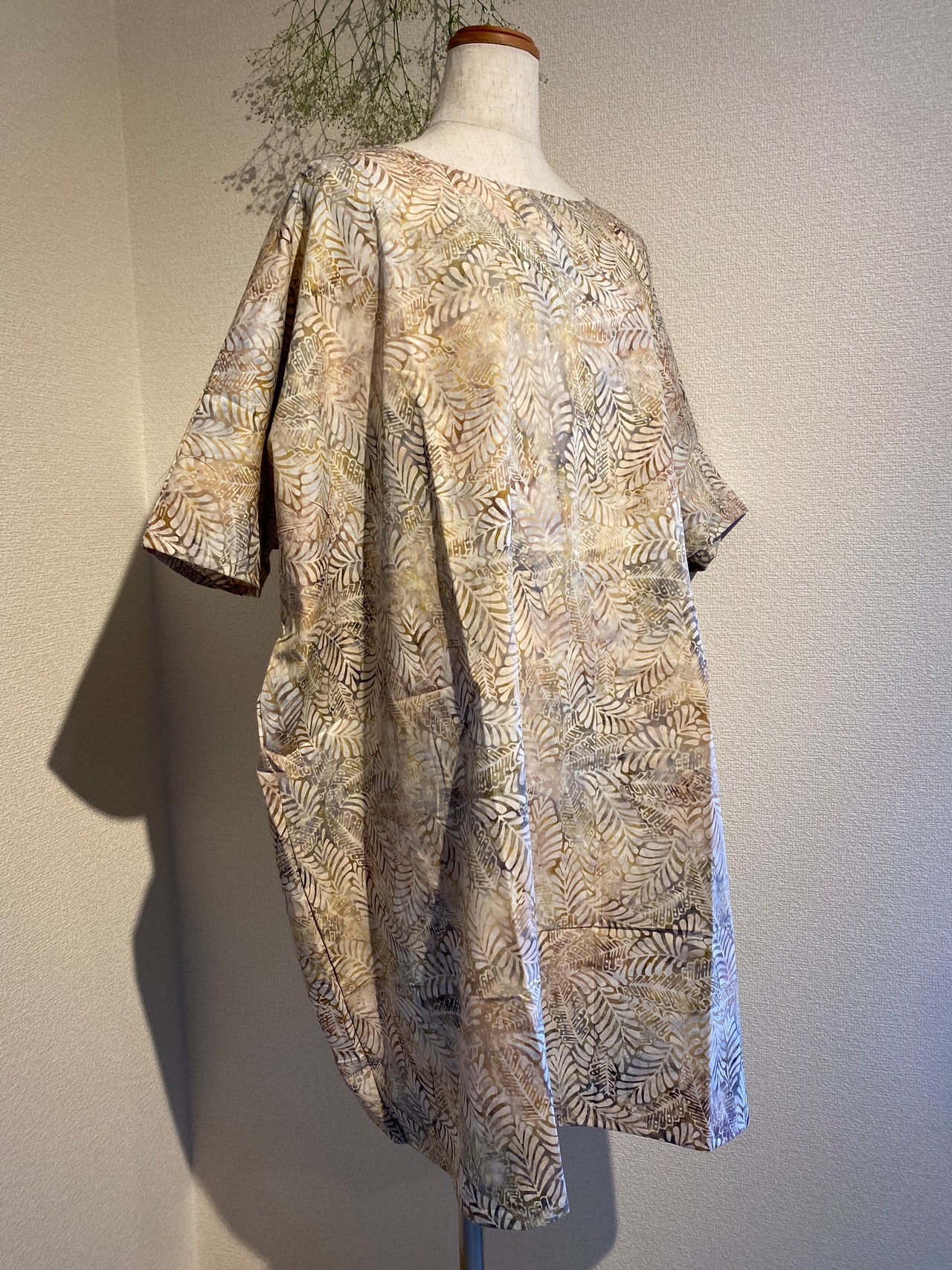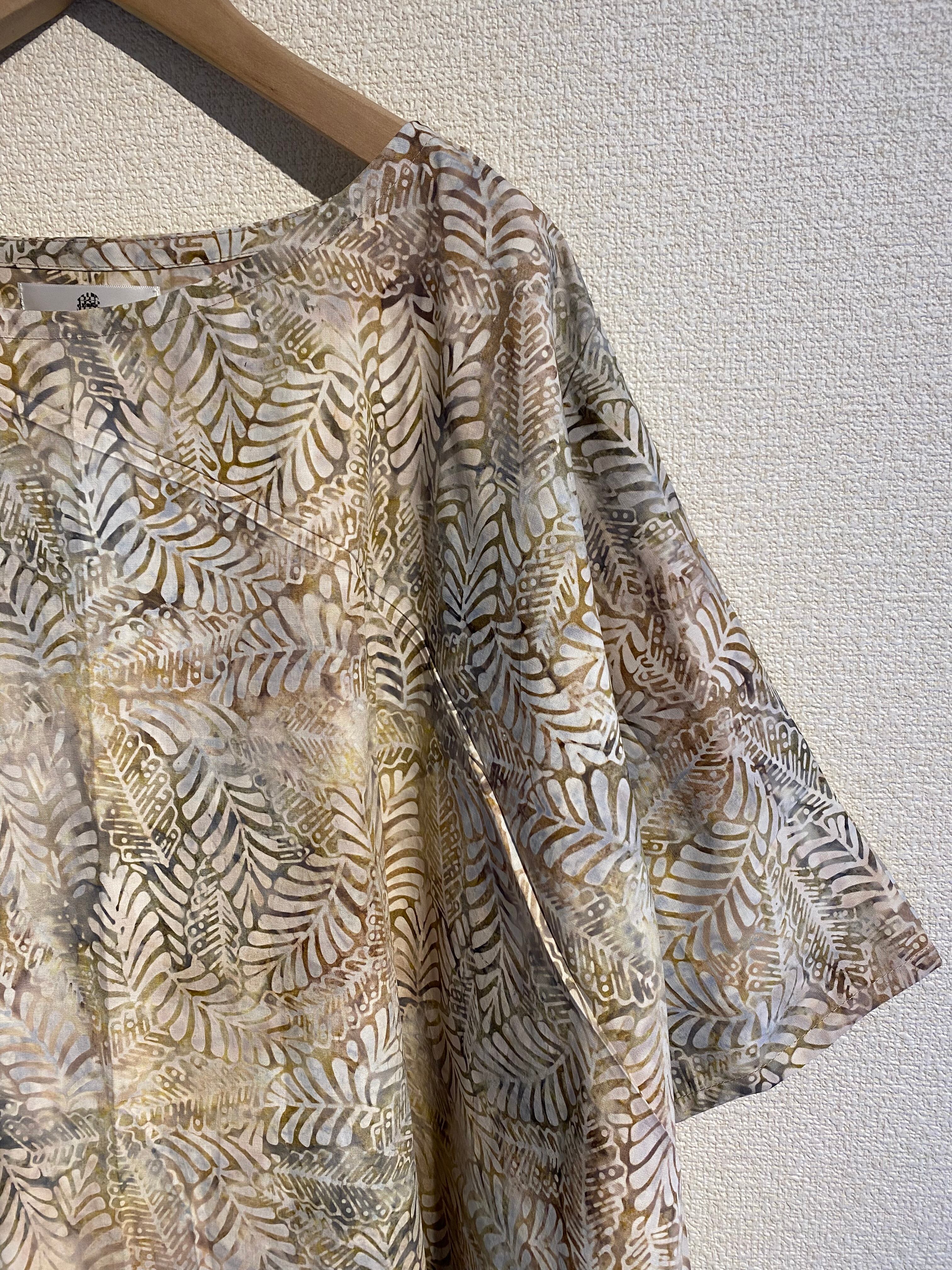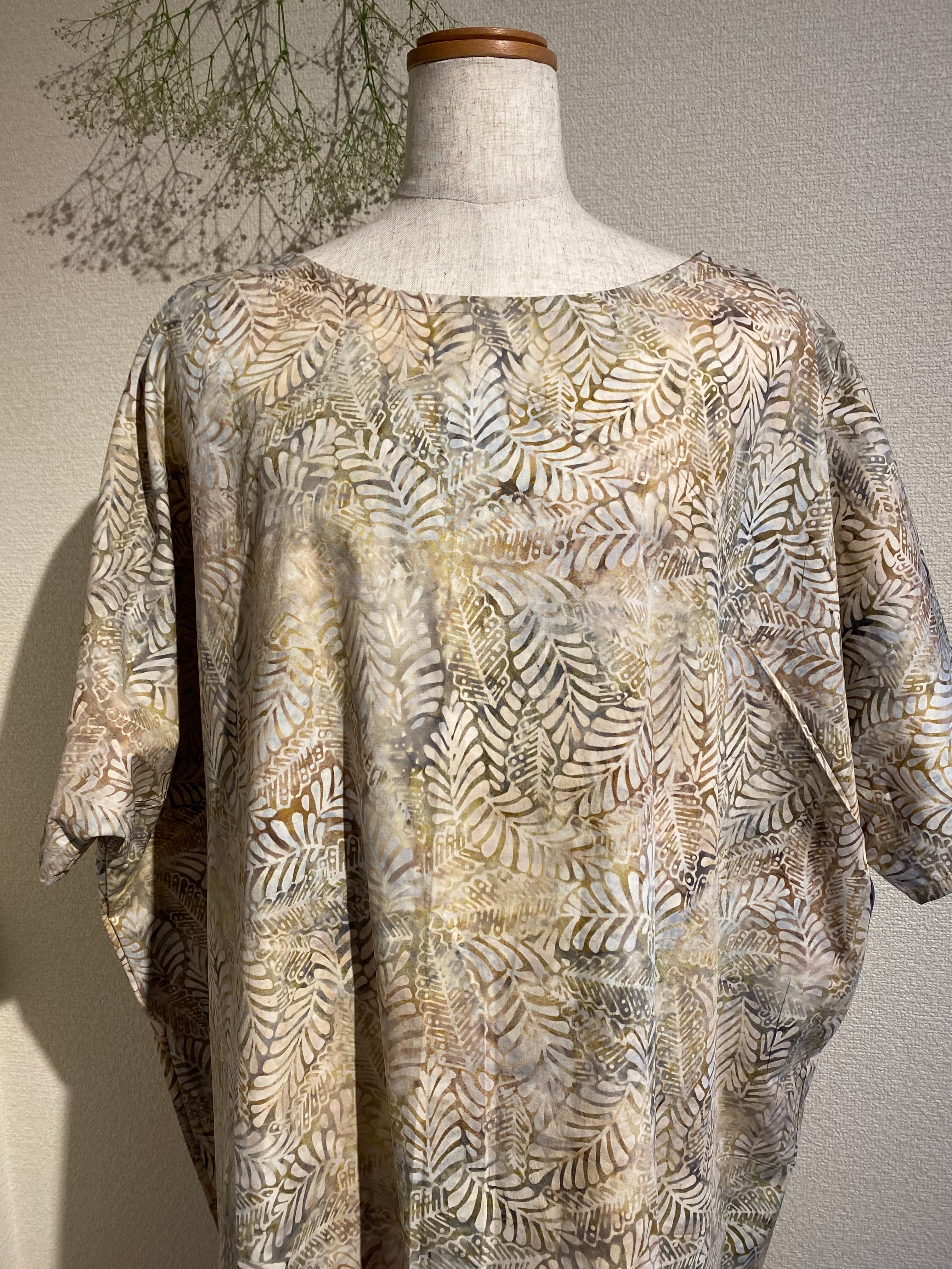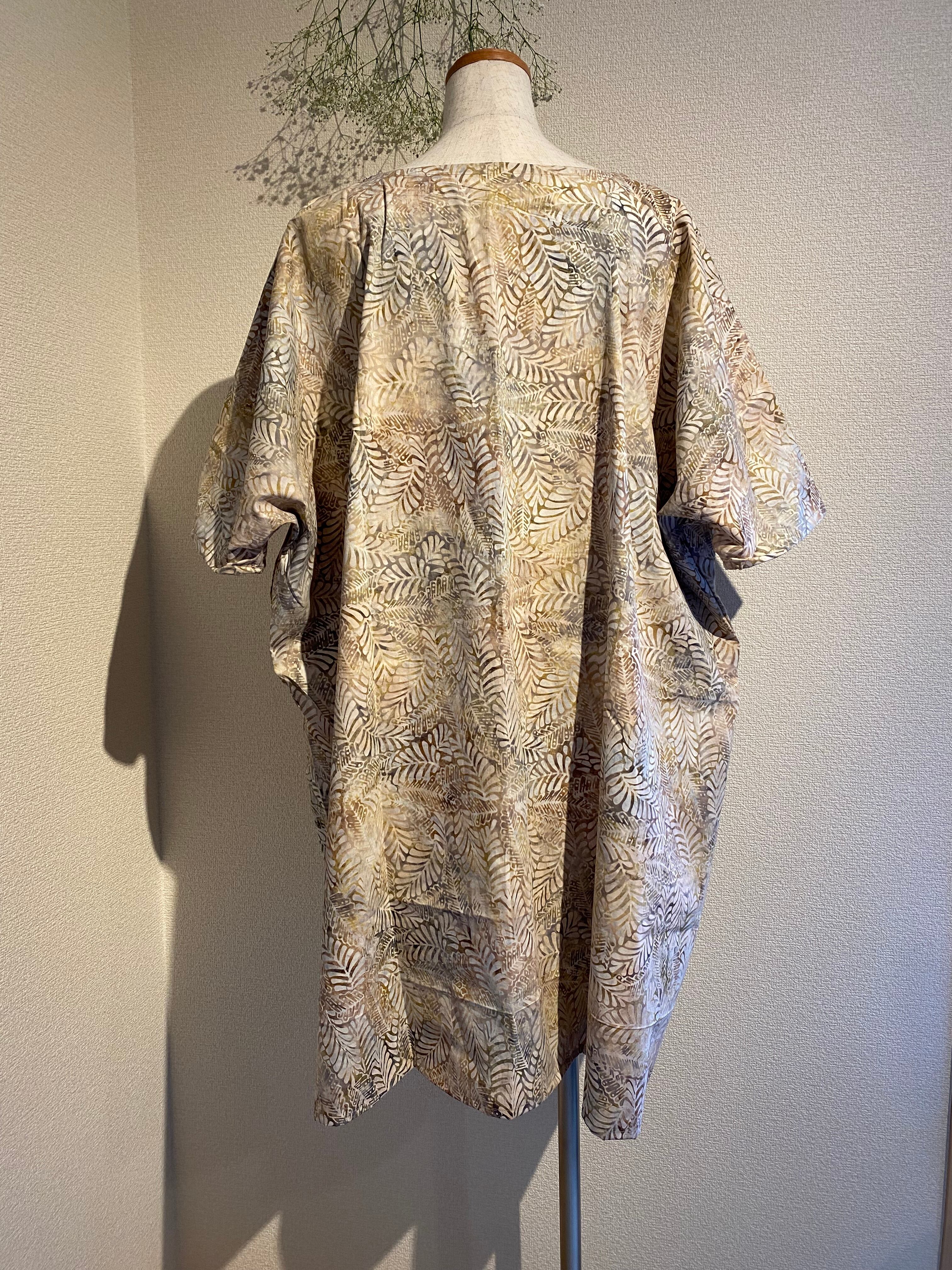 インドネシア、バリ島のチャップバティック(型押しろうけつ染め)を使用した生地でオリジナルチュニックドレスを制作しました!
