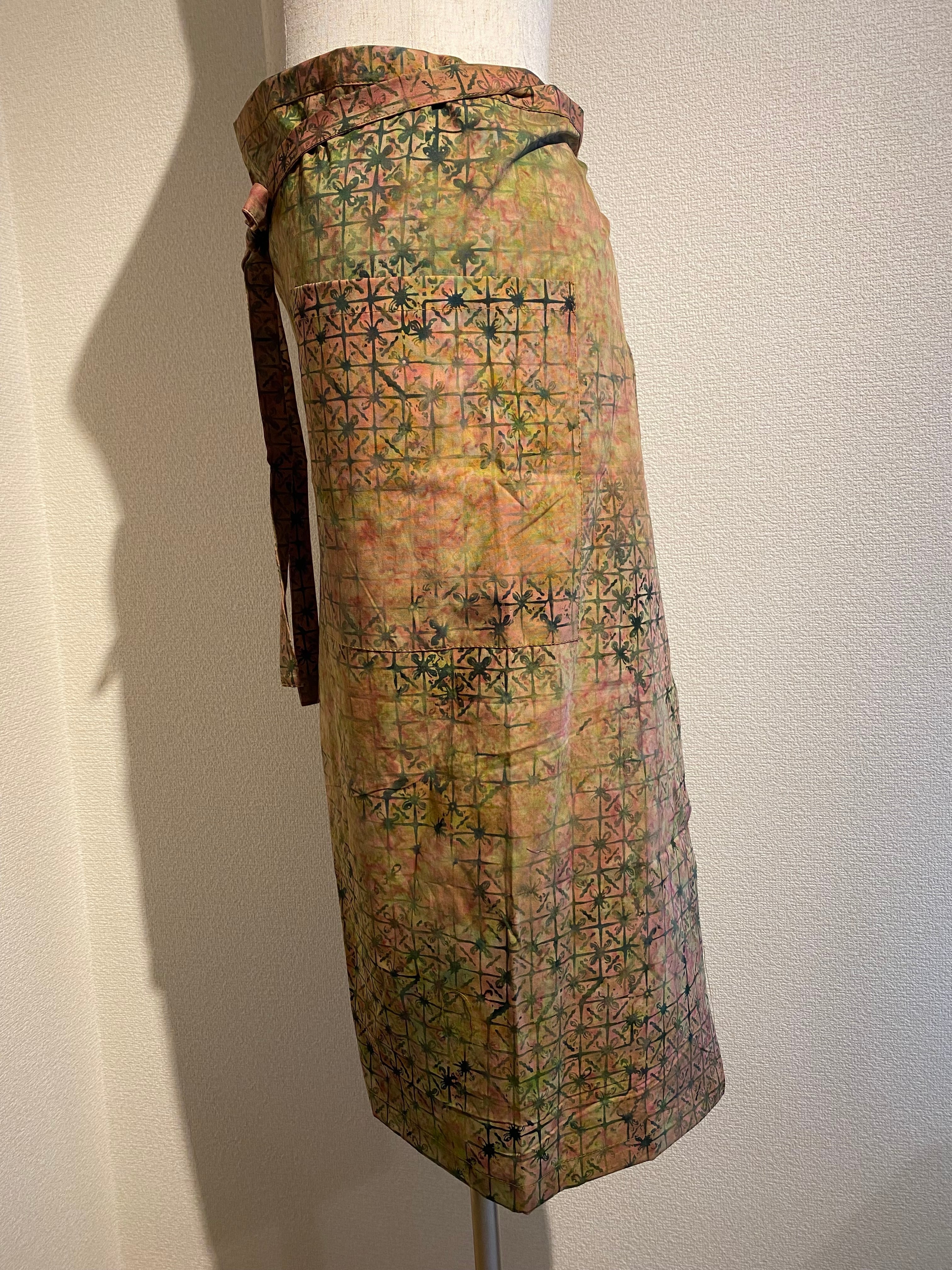 インドネシアのバリ島で製作されたチャップバティック(型押しろうけつ染め)の生地を使用した、オリジナルのサロンエプロンです。シンプルなデザインながら、ロングタイプでポケットが2つ付いており、実用性も兼ね備えています!