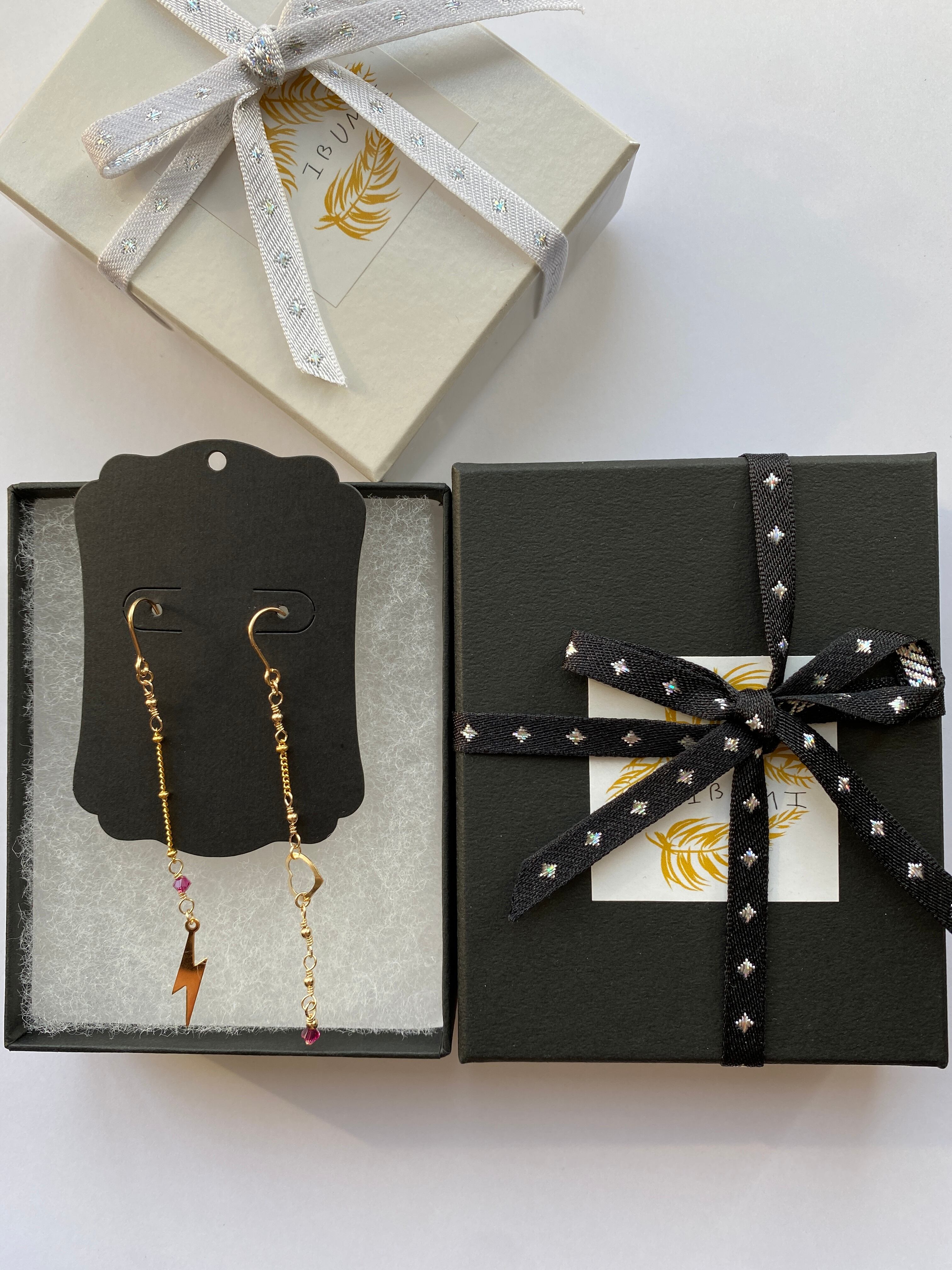 ハートと稲妻のチャームに、ビビットなカラーのクリスタルビーズを合わせて、キュートなデザインになりました。