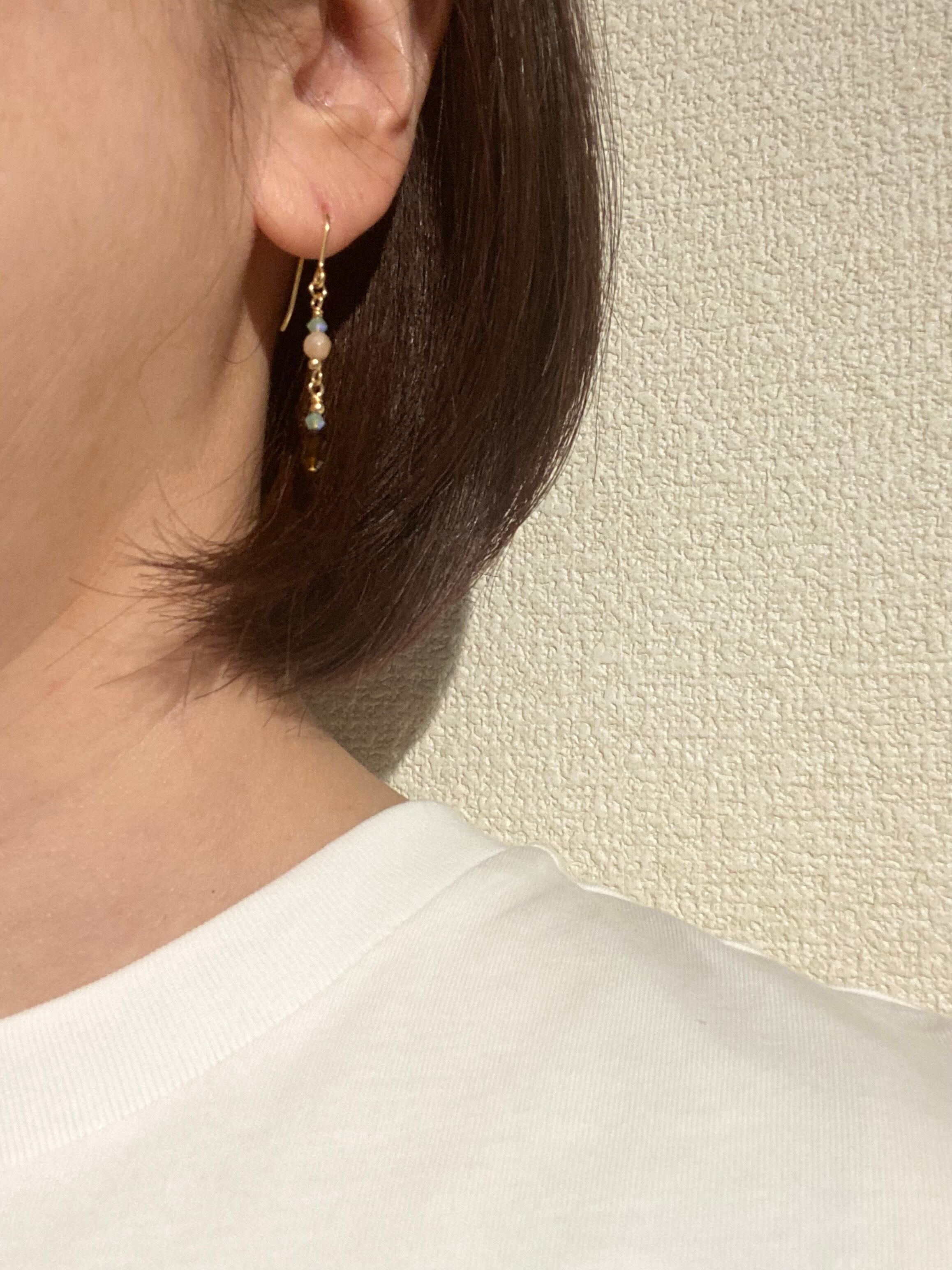 天然石オレンジムーンストーンとクリスタルガラスビーズのグラデーション