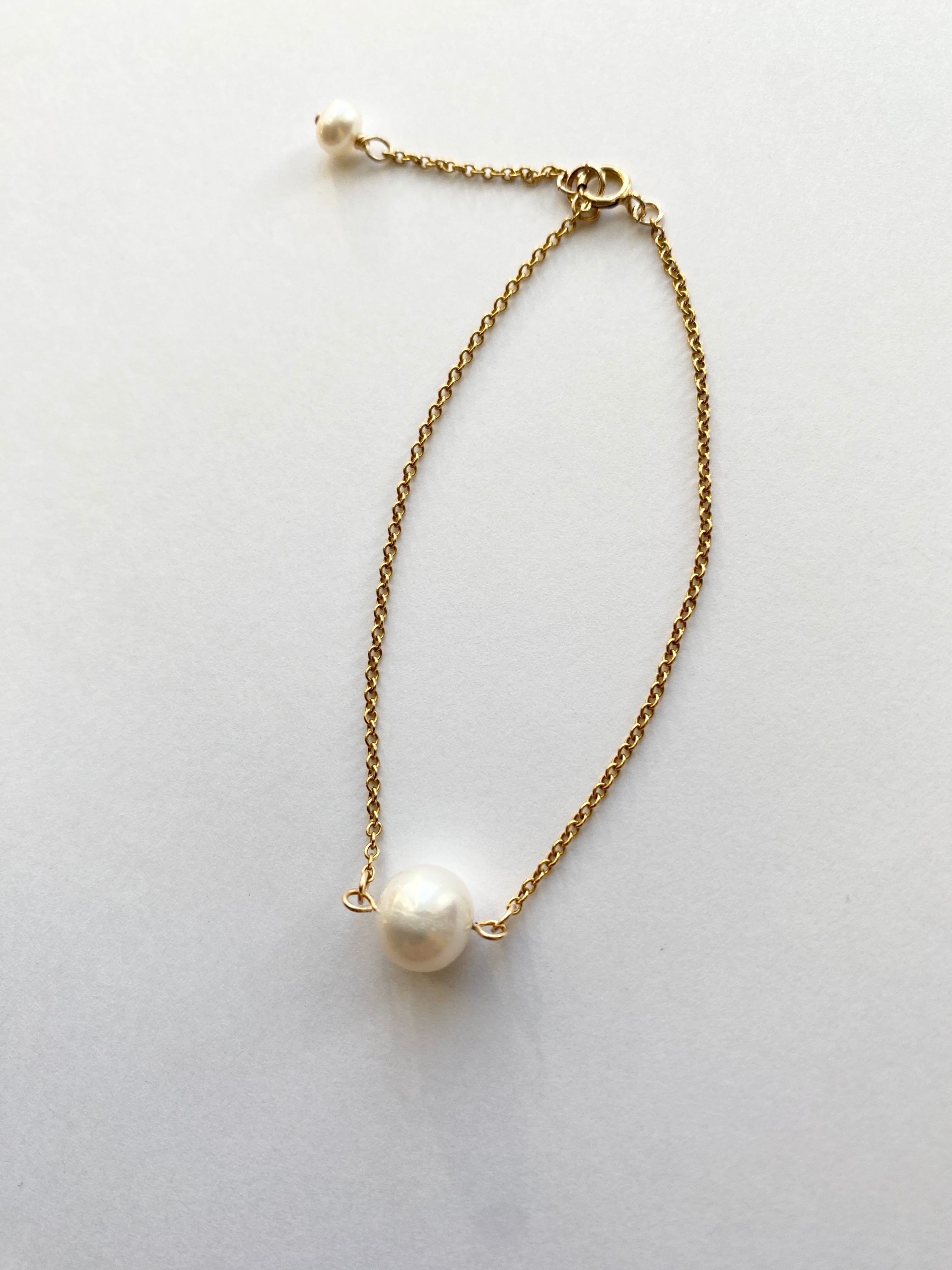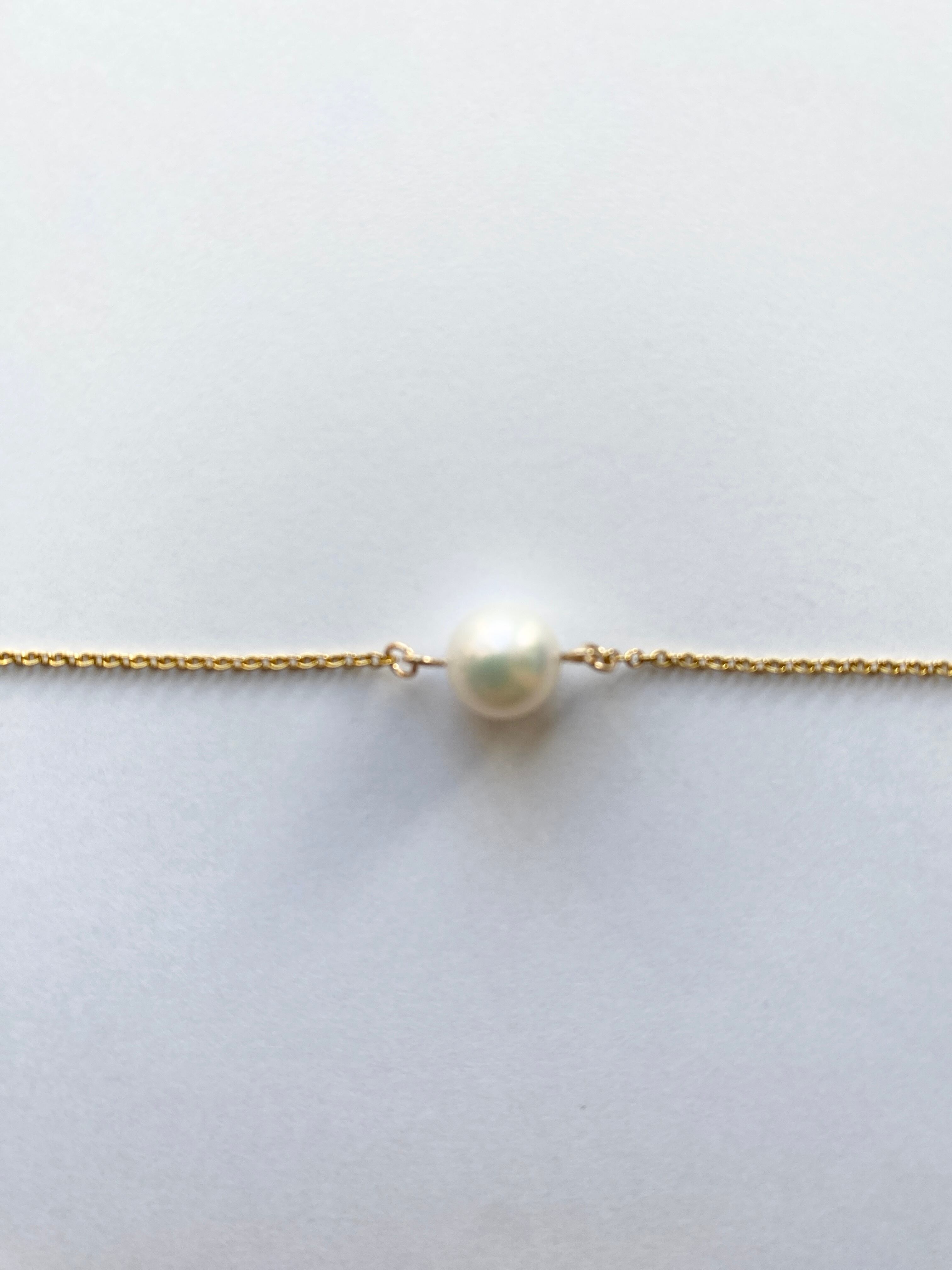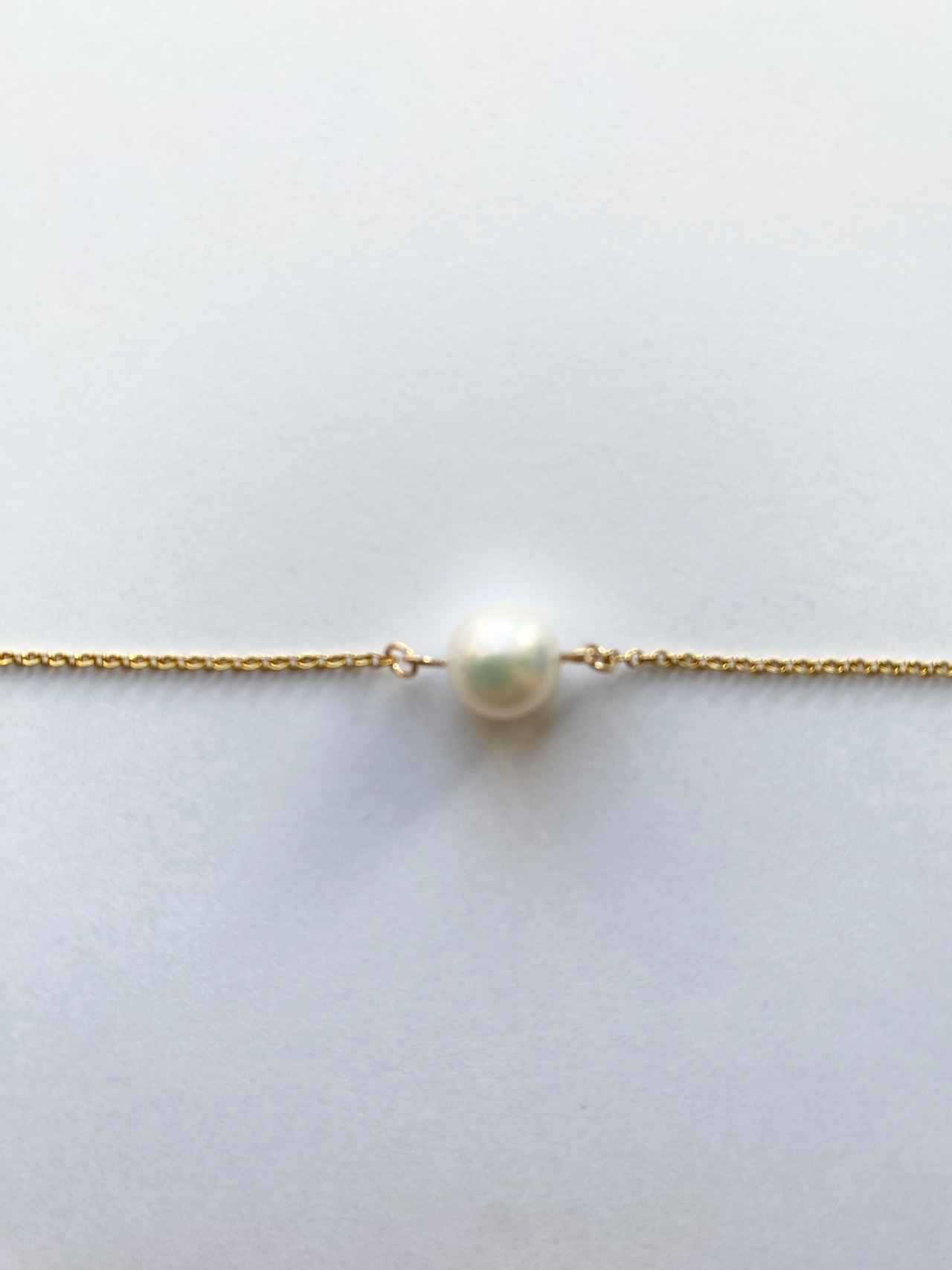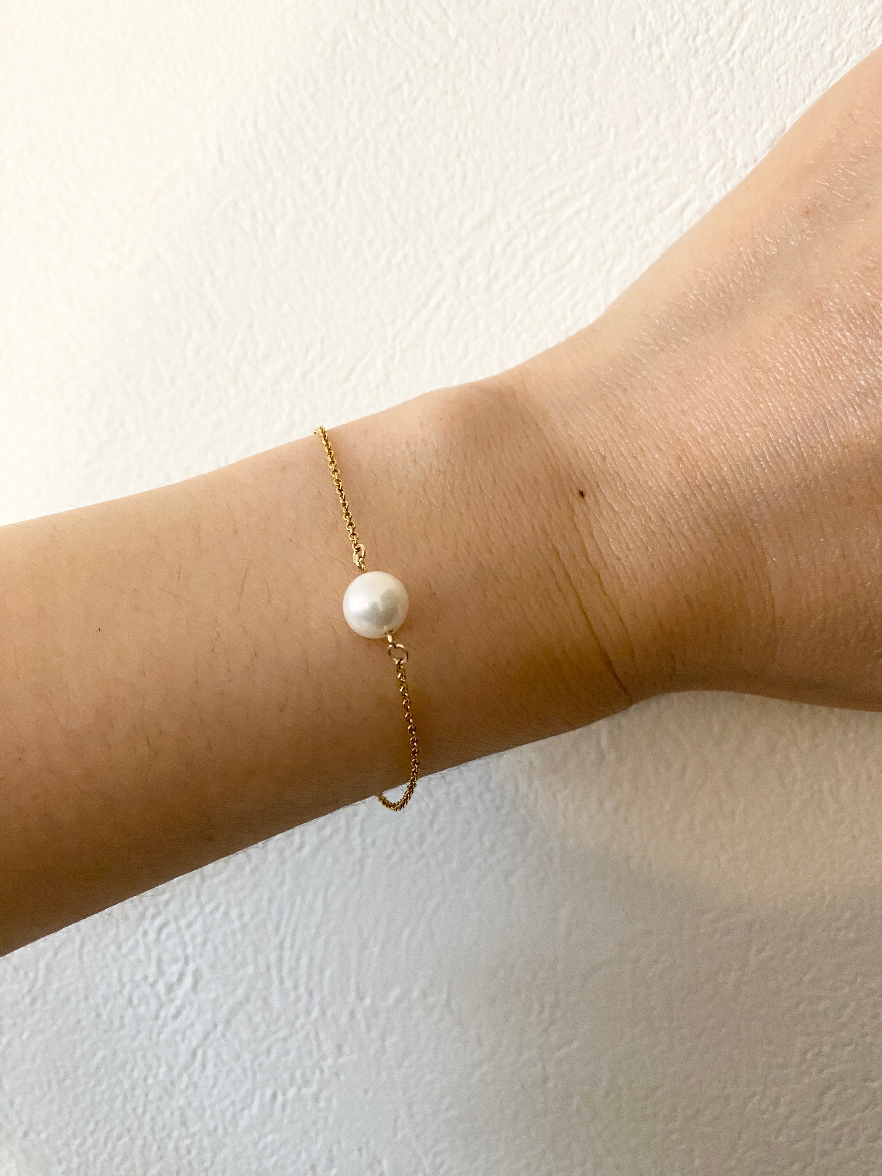 8ミリ玉のパールと繊細なチェーンでシンプルなデザインに仕上げました