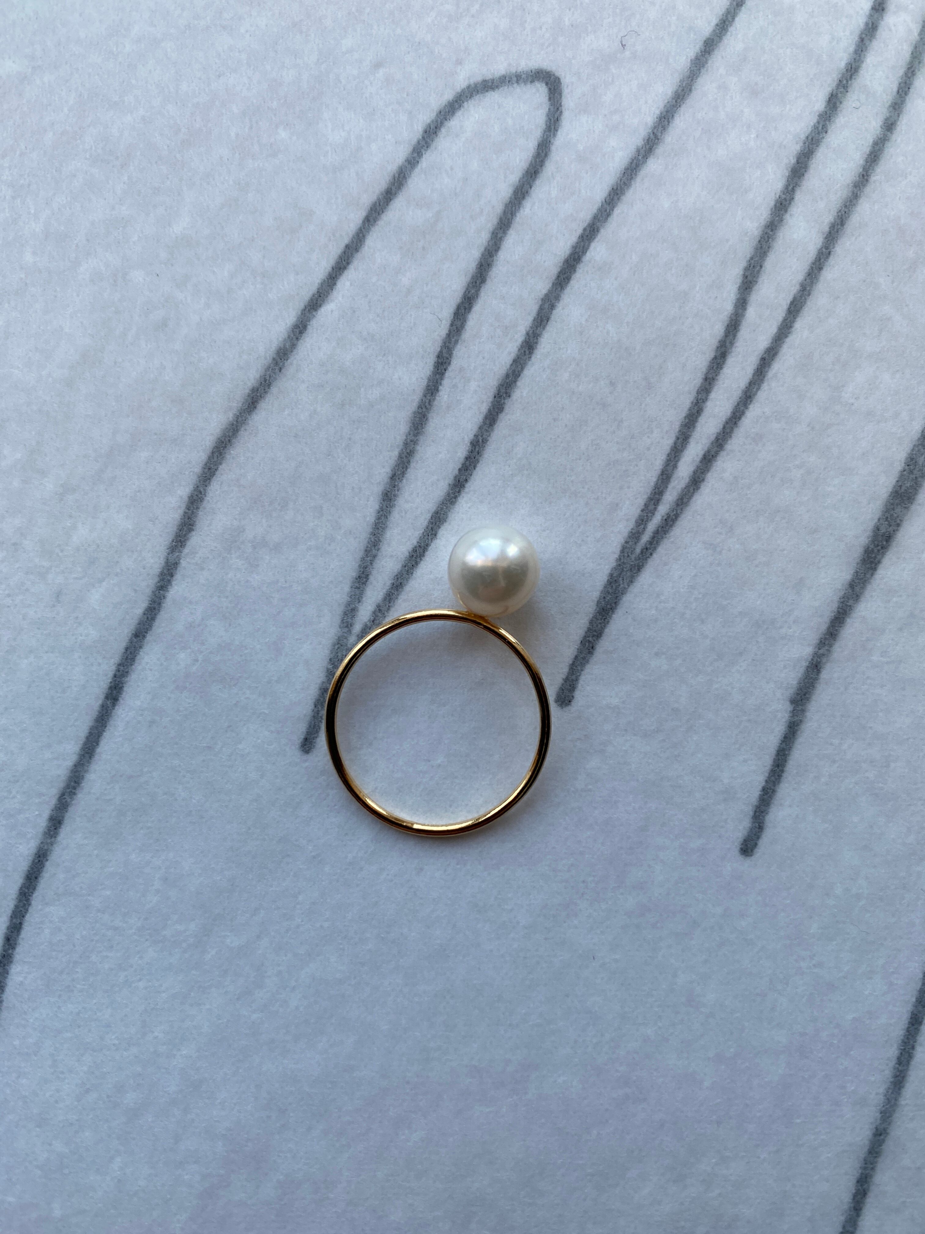 コロンとしたパールがふんわりと白い輝きを放つ丸玉で、曲線も美しくアクセントになる大きさのリングです!