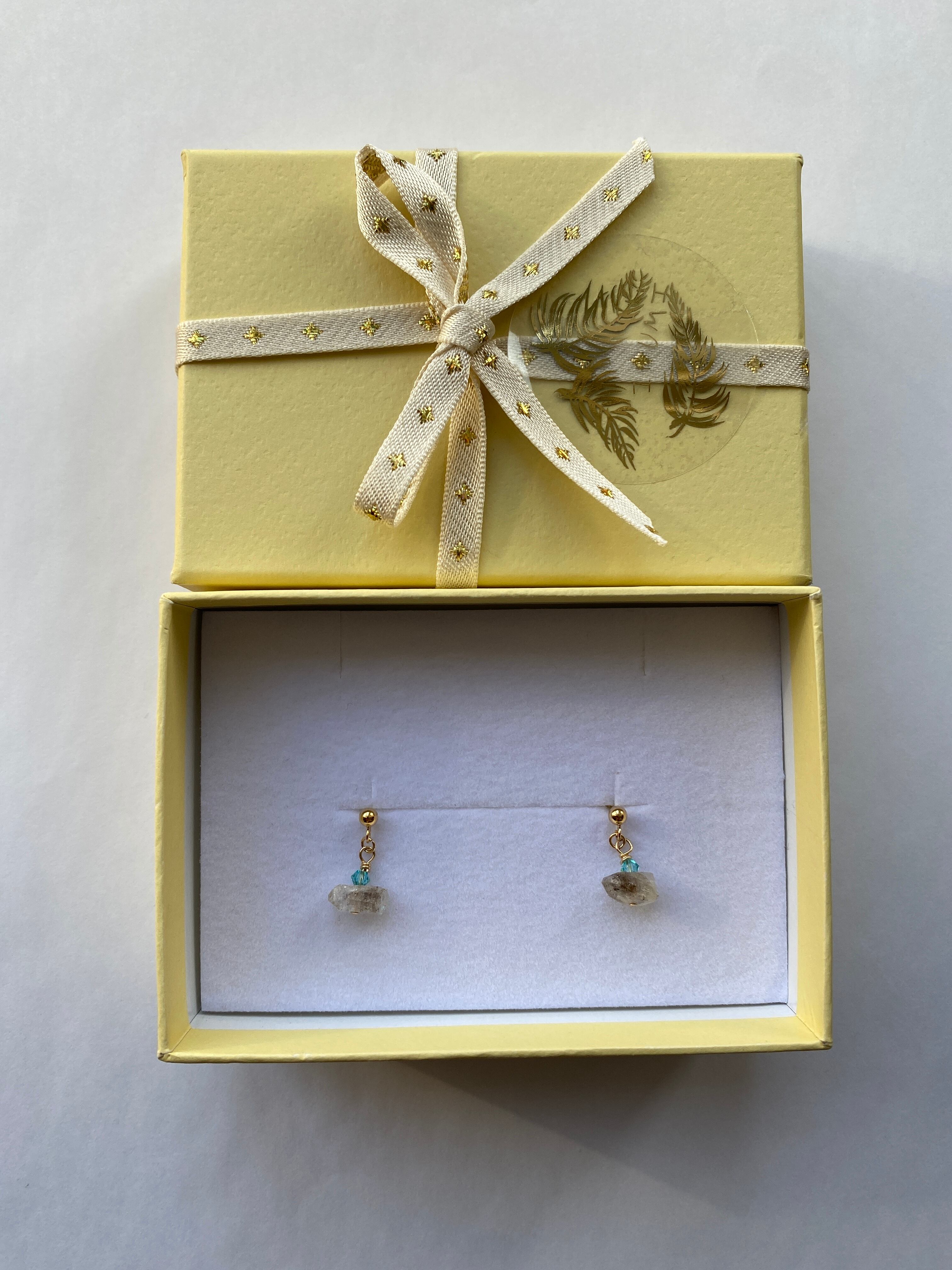 雰囲気抜群のハーキマークリスタルにカラフルなビーズがアクセントになった14kgfのスタッズピアス