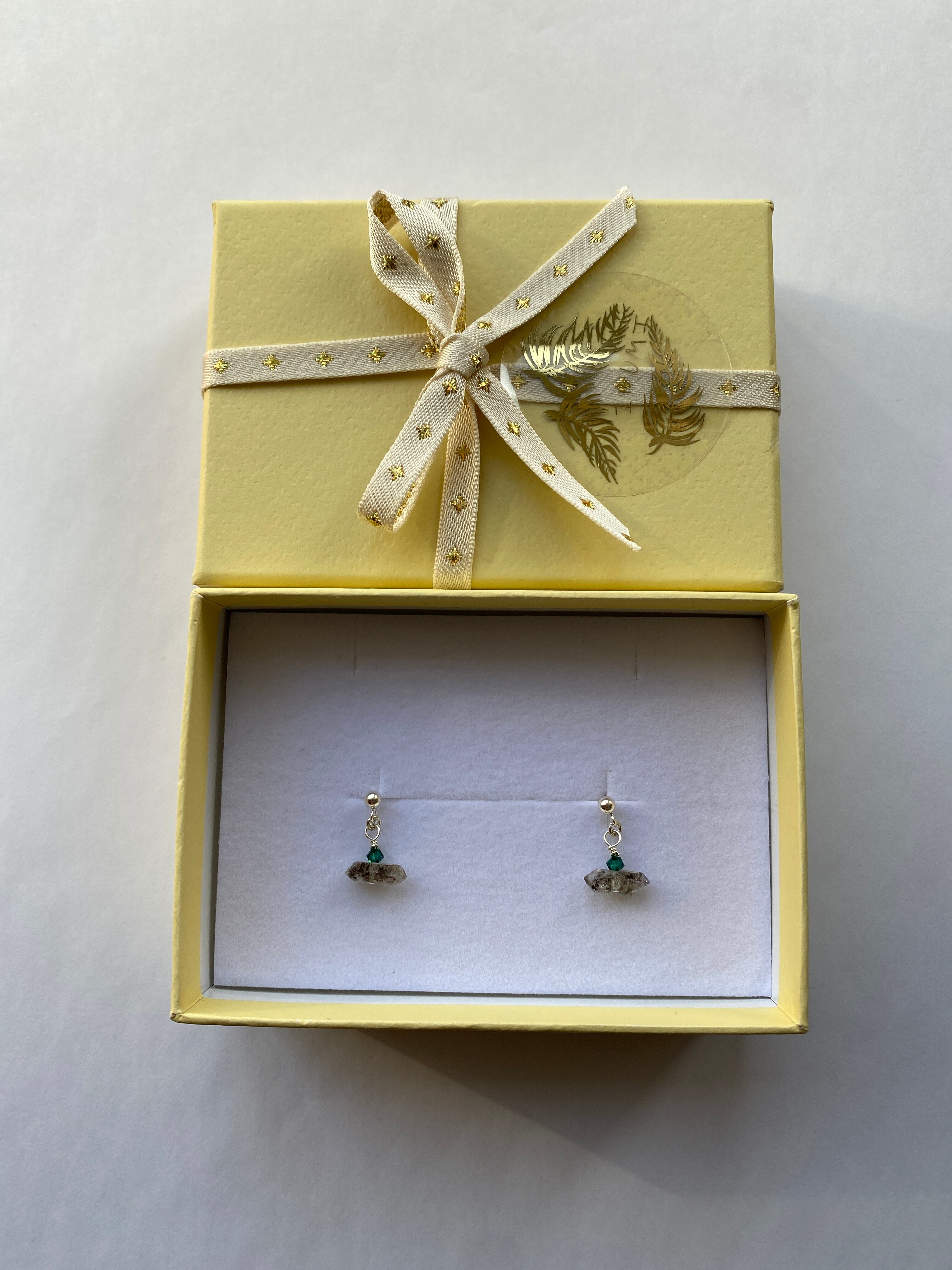 雰囲気抜群のハーキマークリスタルにカラフルなビーズがアクセントになったsilverのスタッズピアス