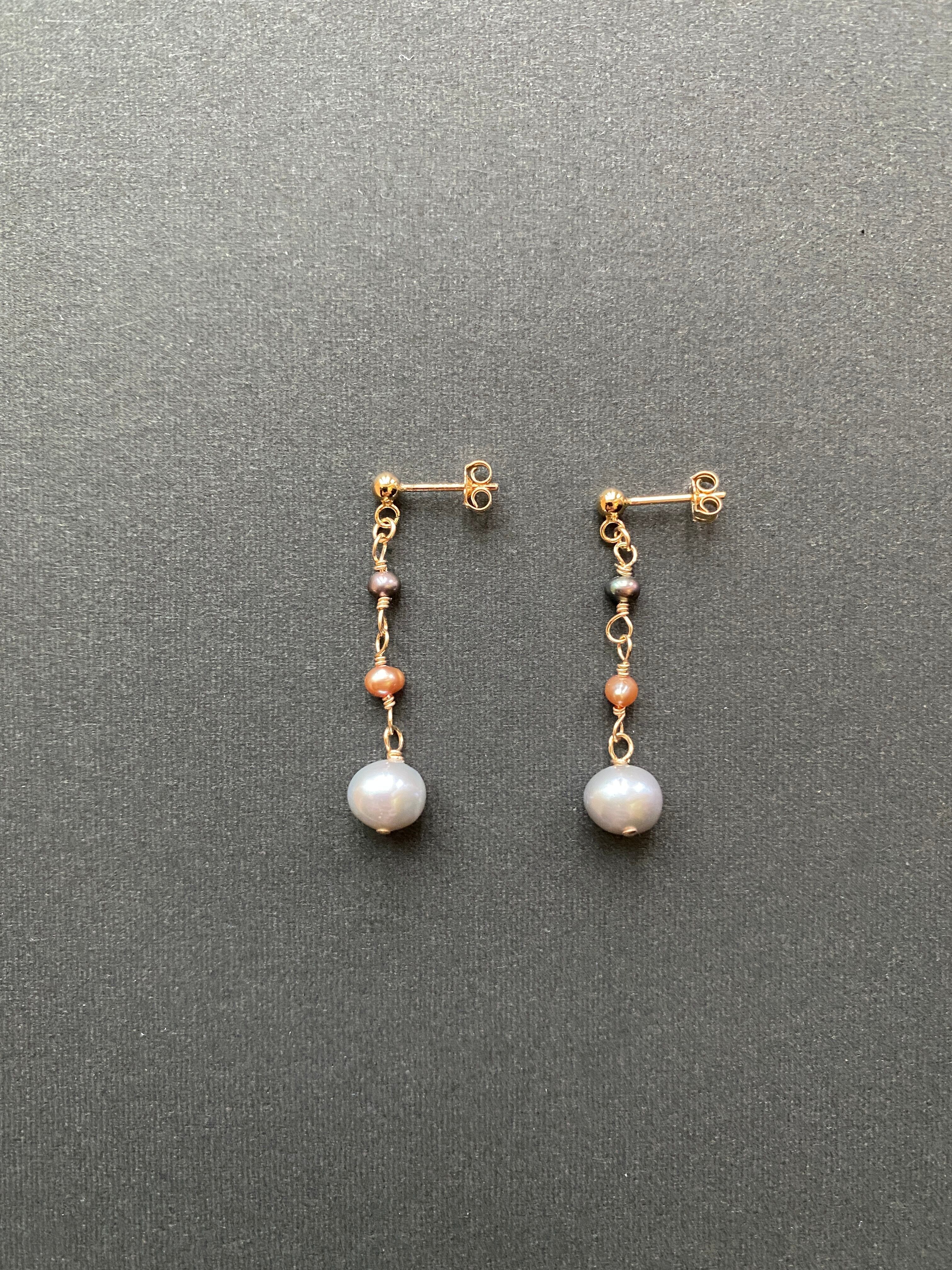 高級淡水パールを使用した、この美しいパールピアスはシルバーグレーカラーにブロンズとブラウンのパールを組み合わせた贅沢なデザインです。