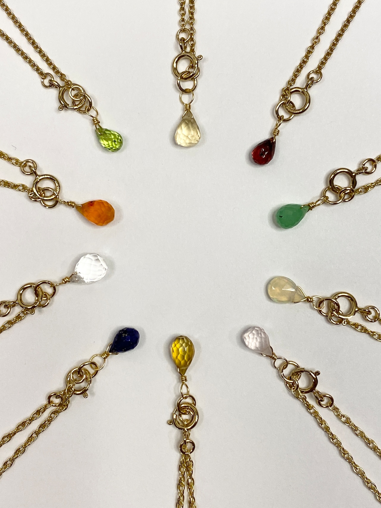 このブレスレットは、ワンポイントの天然石が手首で揺れるデザインが魅力。シングルチェーン又はダブルチェーンからお選び下さい。