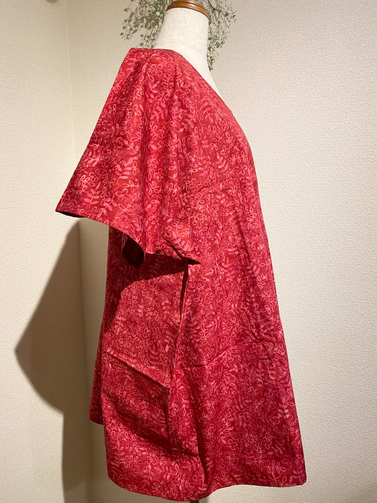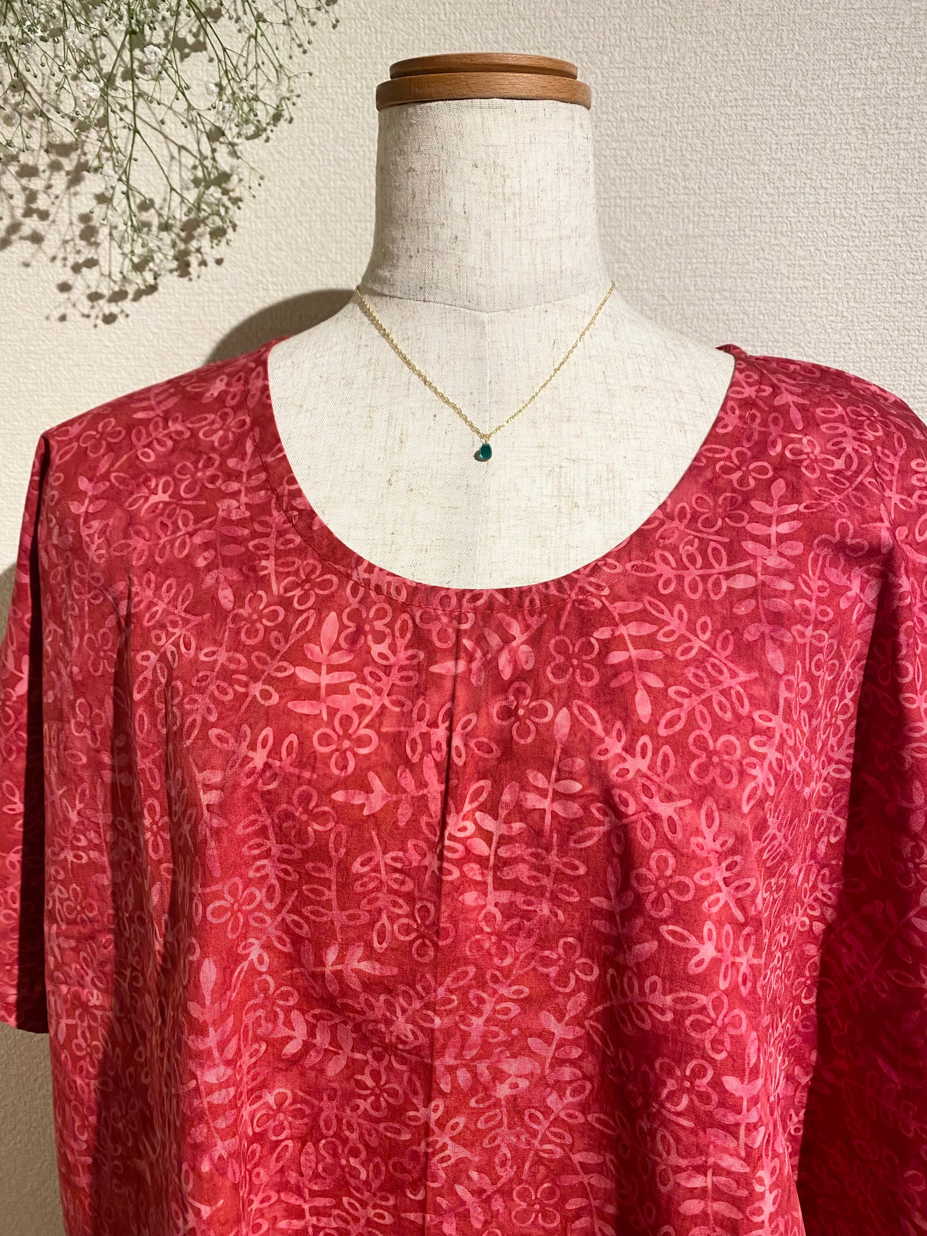 インドネシア、バリ島のチャップバティック(型押しろうけつ染め)を使用した生地でオリジナルチュニックドレスを制作しました!