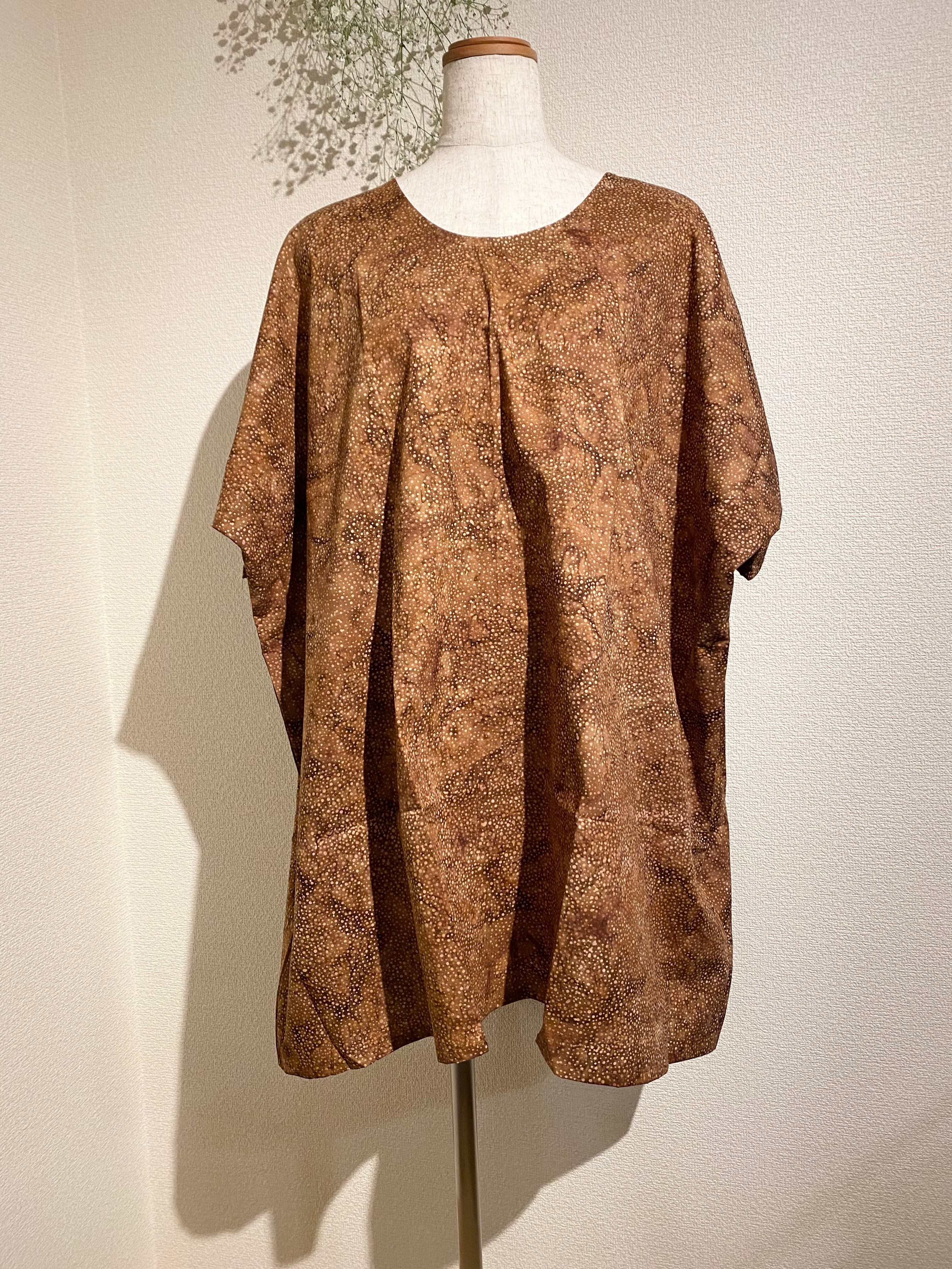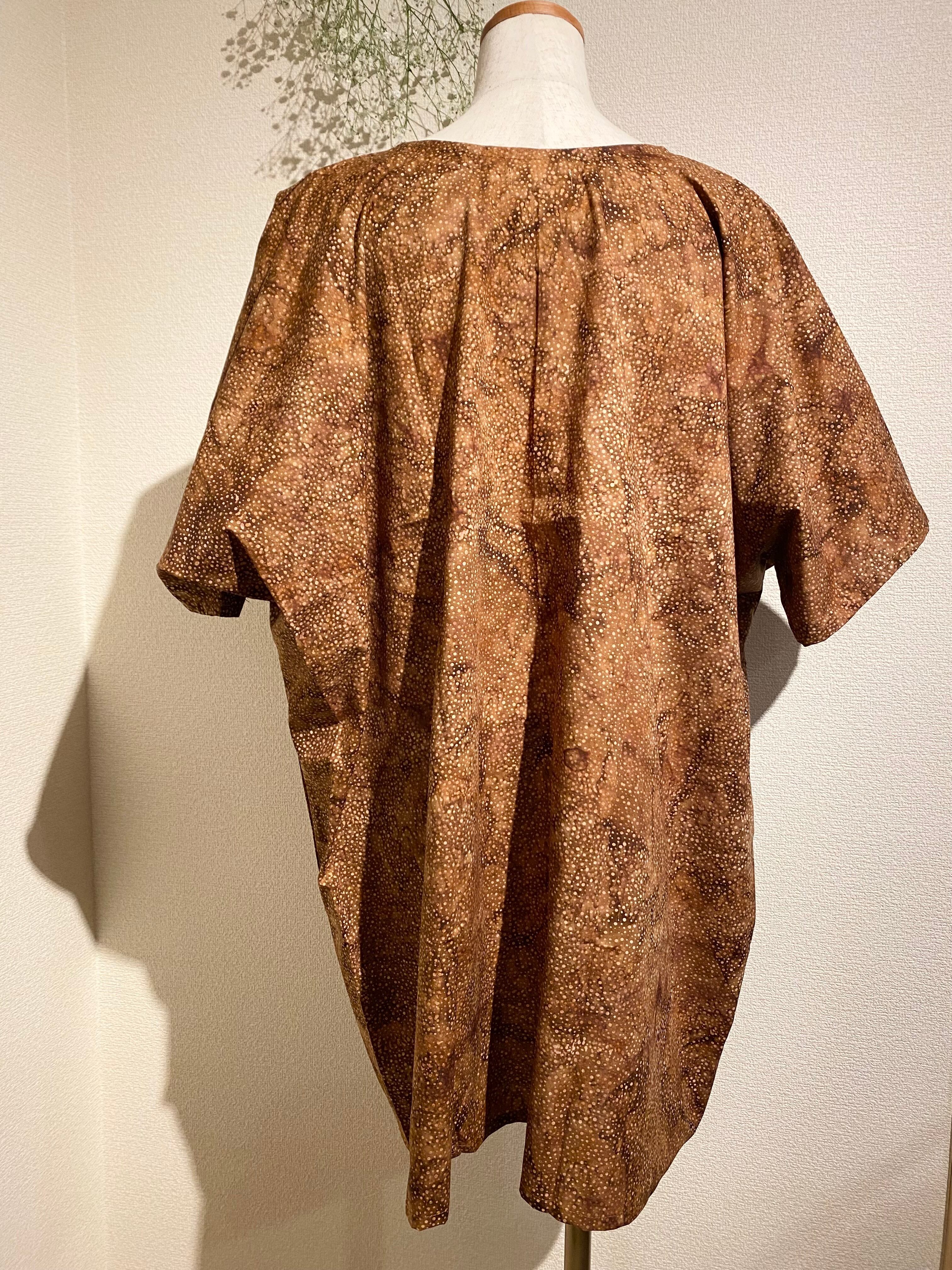 インドネシア、バリ島のチャップバティック(型押しろうけつ染め)を使用した生地でオリジナルチュニックドレスを制作しました!