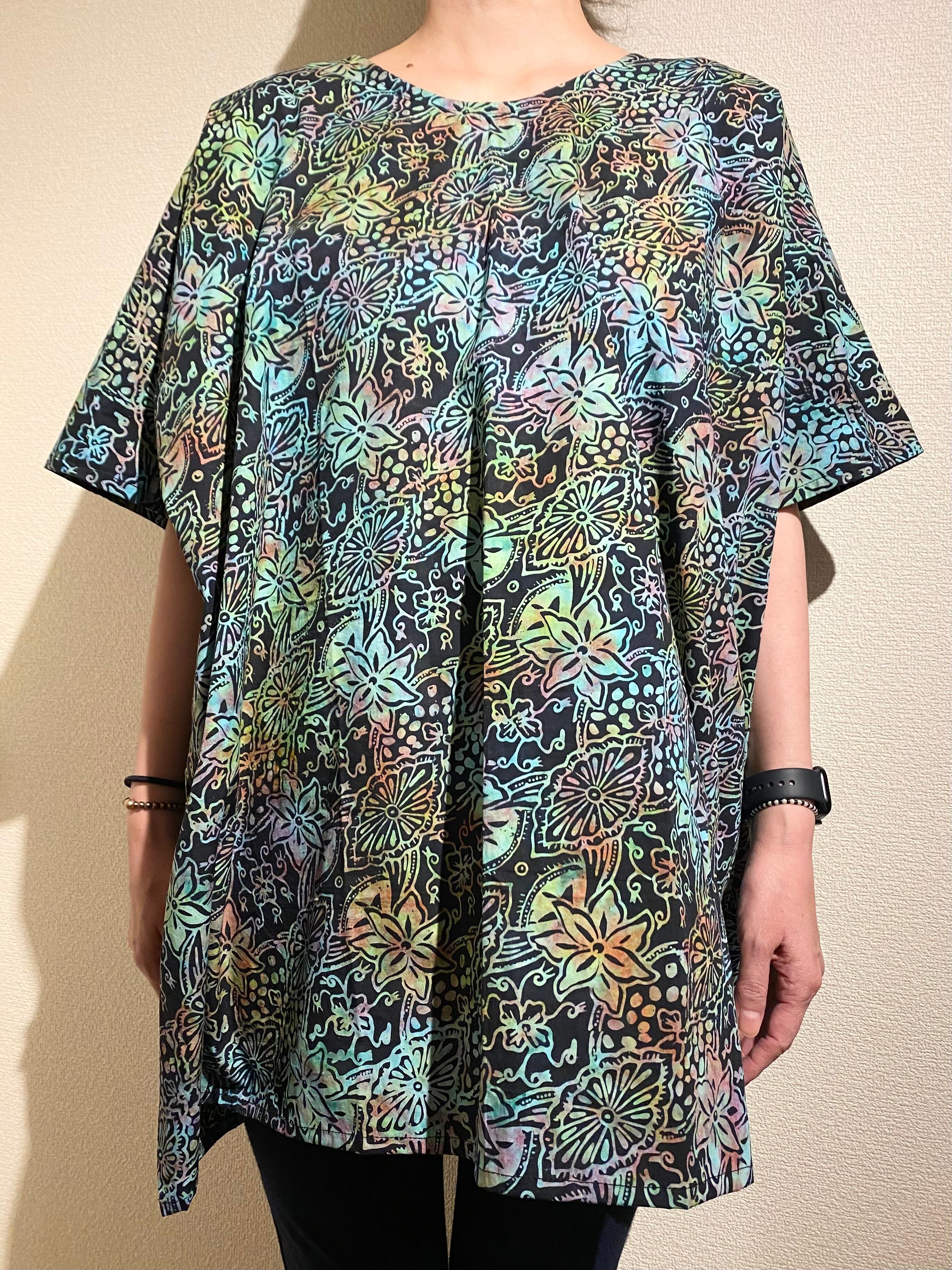 インドネシア、バリ島のチャップバティック(型押しろうけつ染め)を使用した生地でオリジナルチュニックドレスを制作しました!