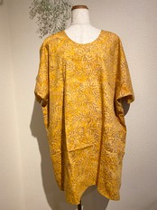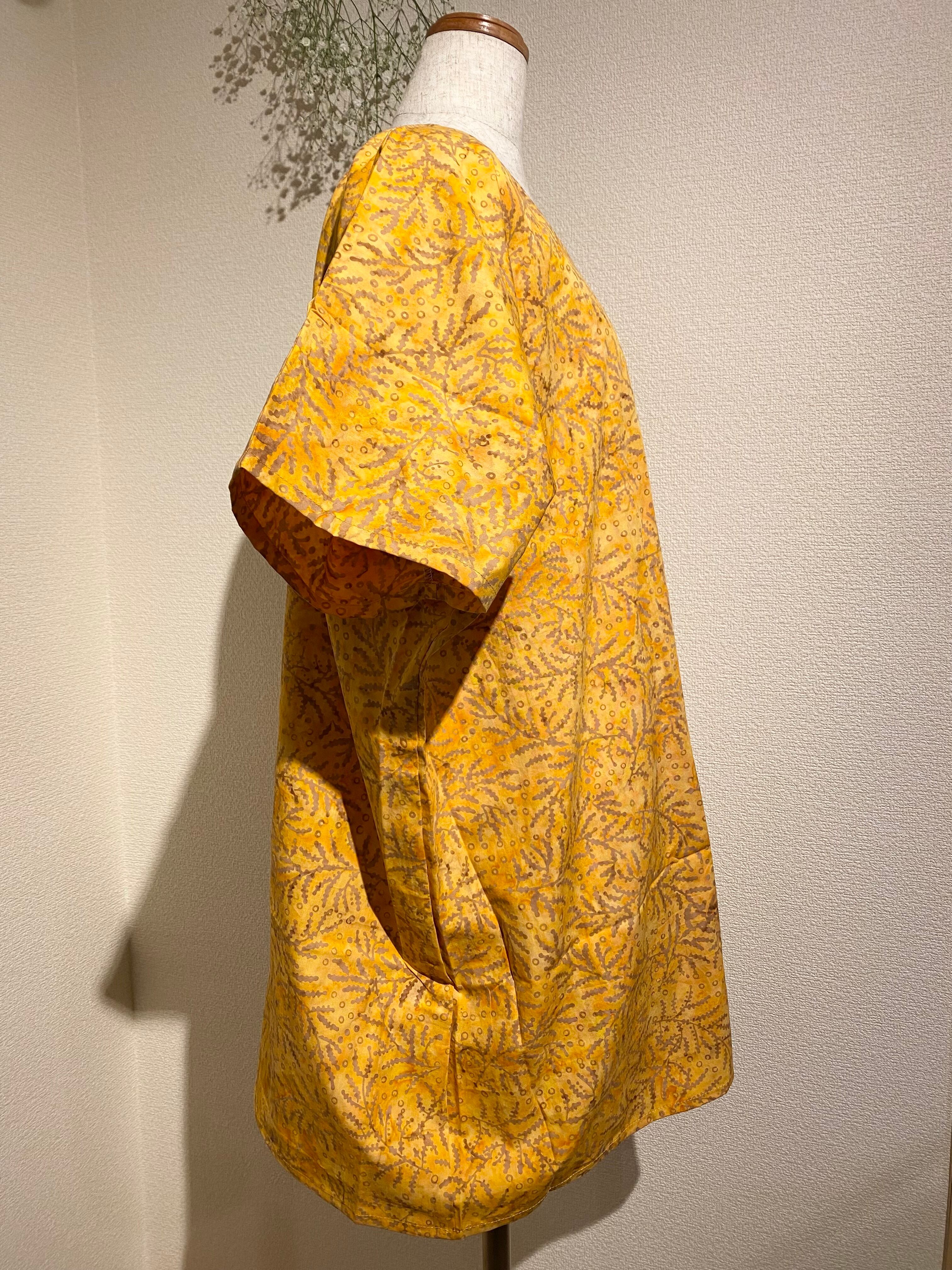インドネシア、バリ島のチャップバティック(型押しろうけつ染め)を使用した生地でオリジナルチュニックドレスを制作しました!