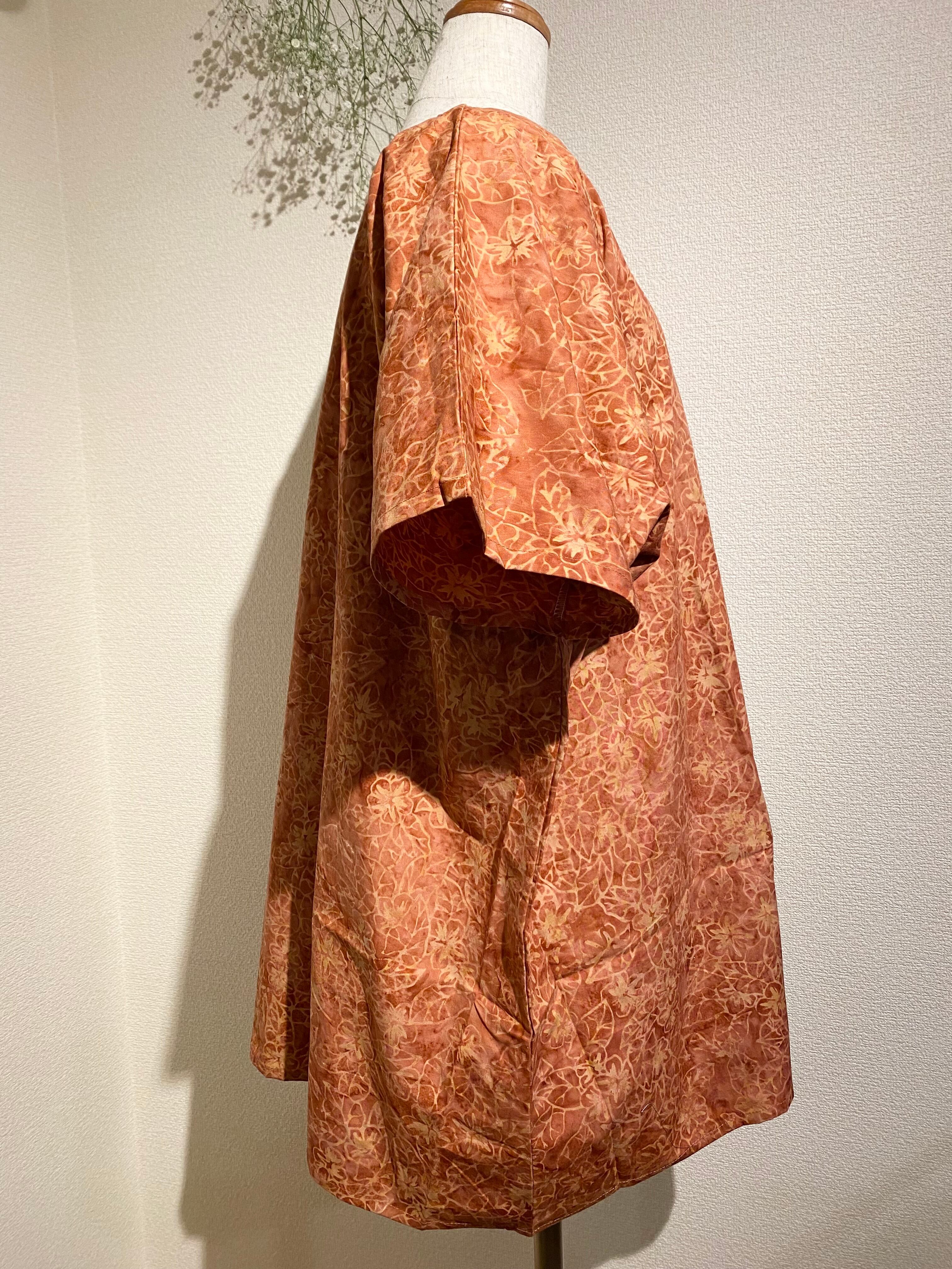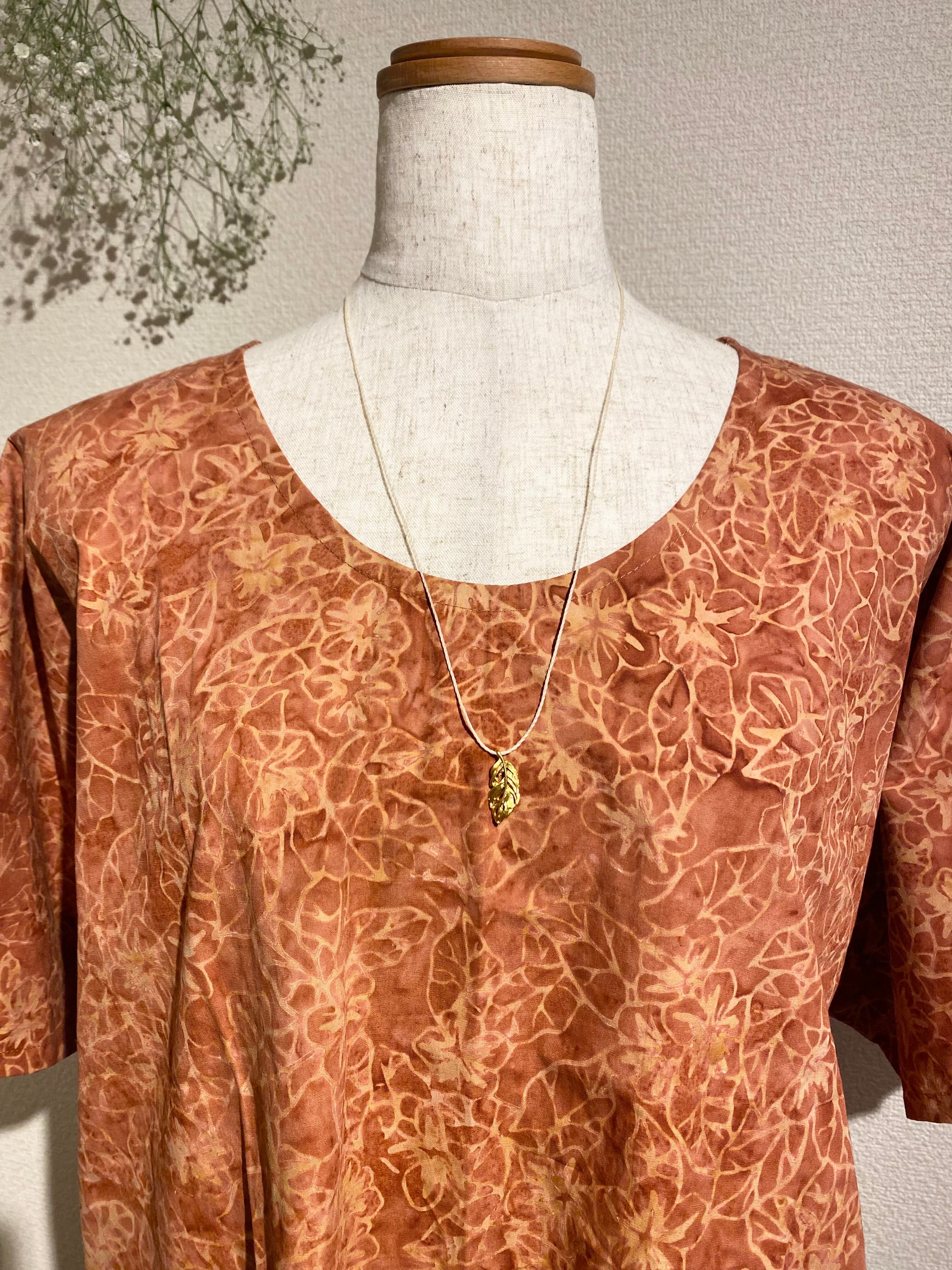 インドネシア、バリ島のチャップバティック(型押しろうけつ染め)を使用した生地でオリジナルチュニックドレスを制作しました!