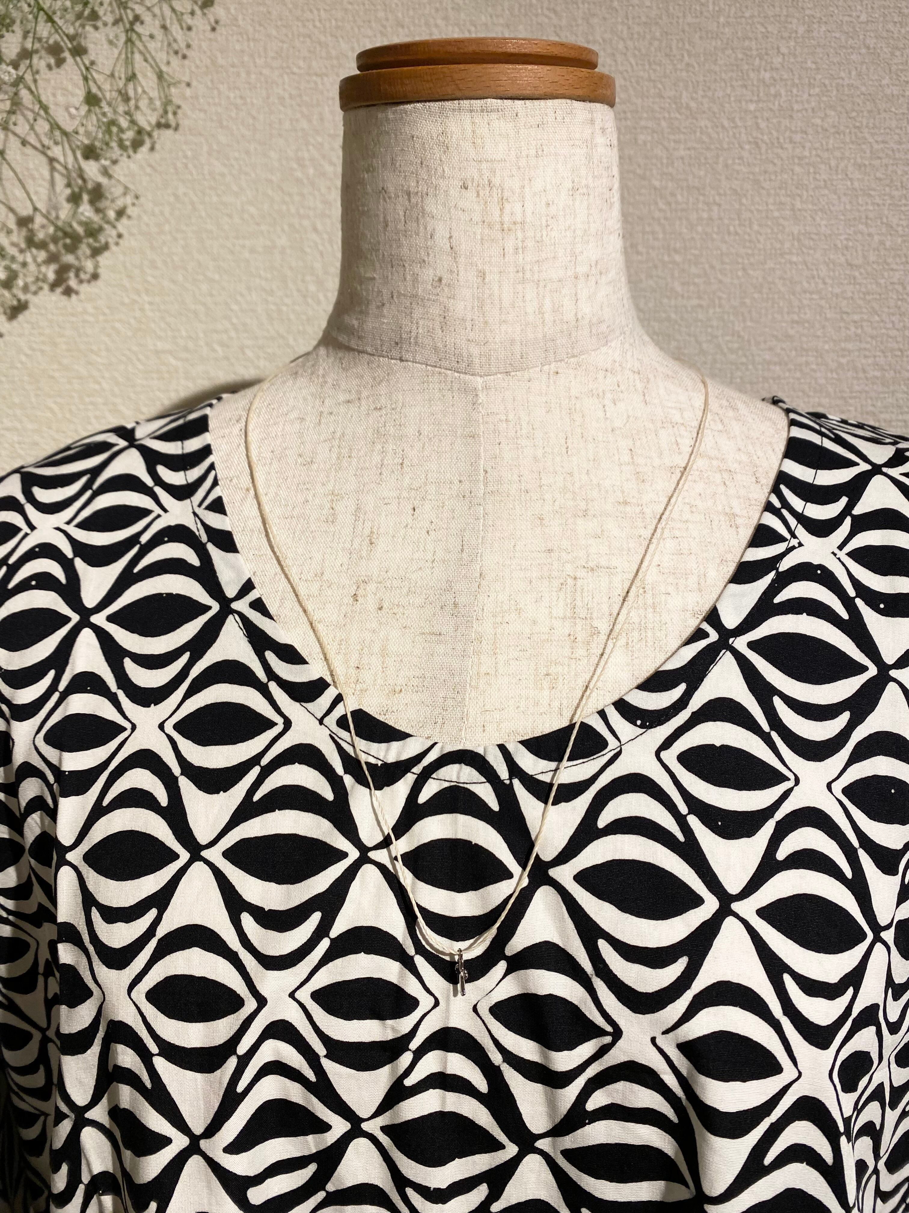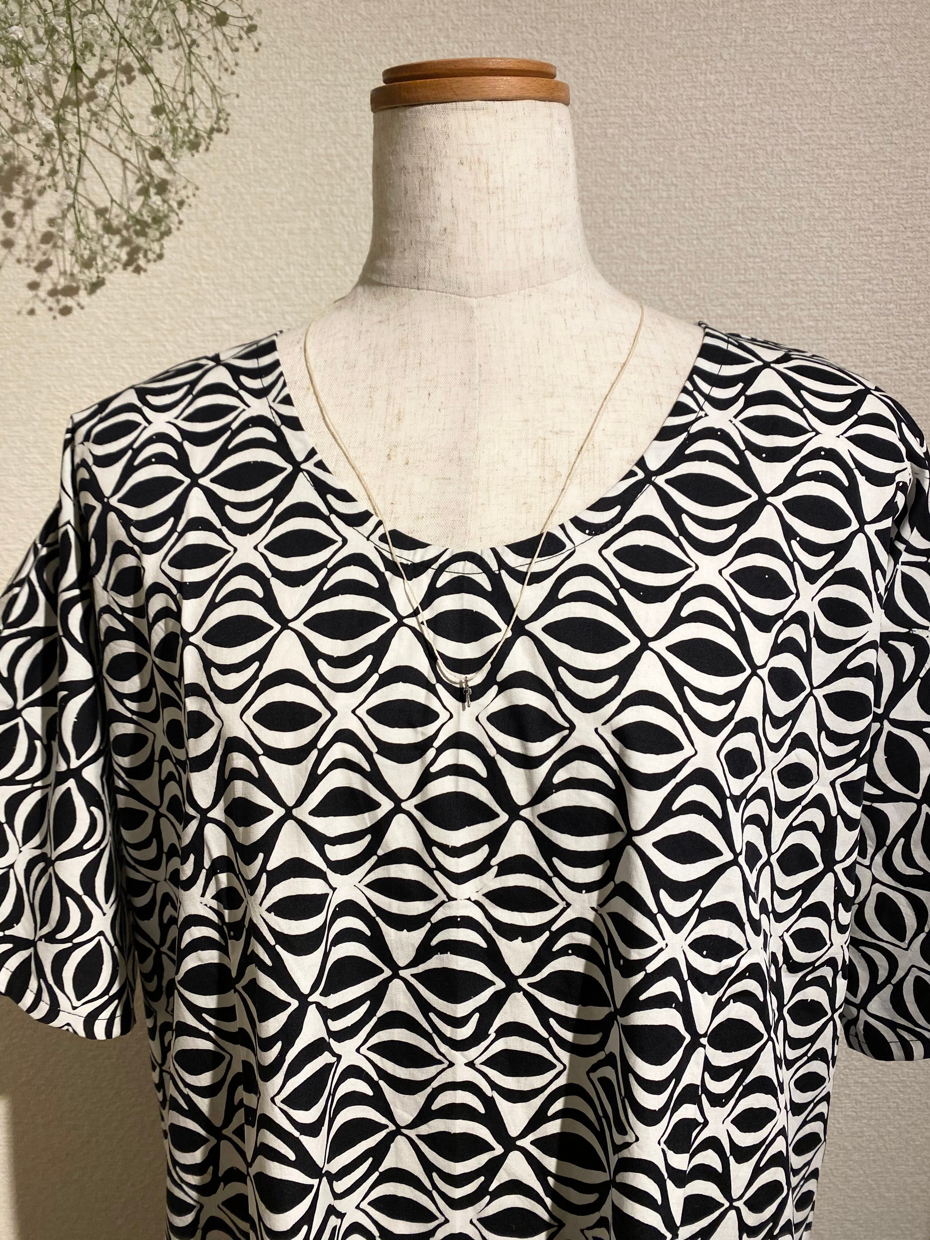 個性的なデザインが特徴のチュニックドレスで、その独特なパターンがあなたのコーディネートを華やかに演出してくれます。
