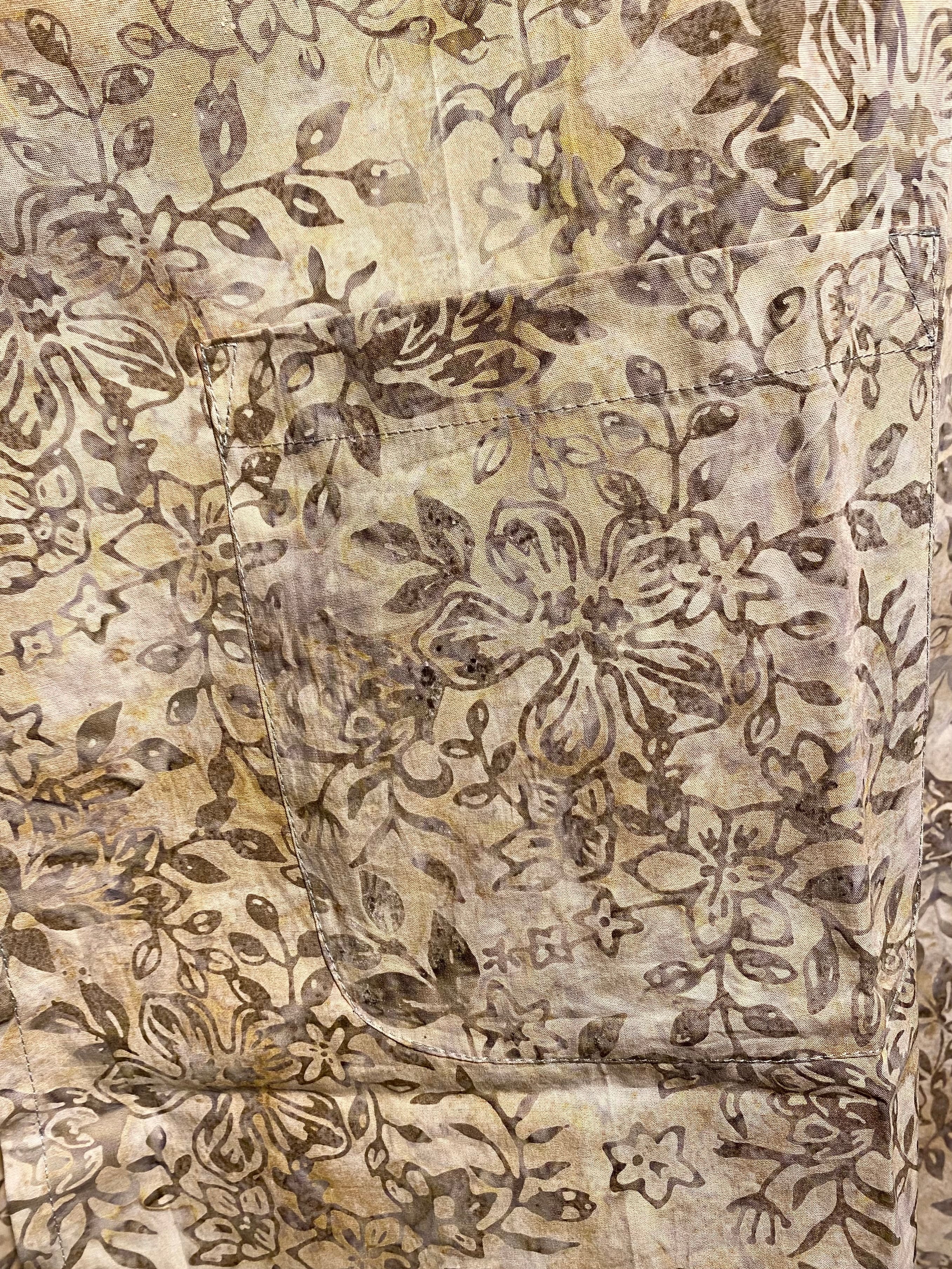 インドネシア、バリ島のチャップバティック(型押しろうけつ染め)を使用した生地でオリジナルエプロンドレスを制作しました!