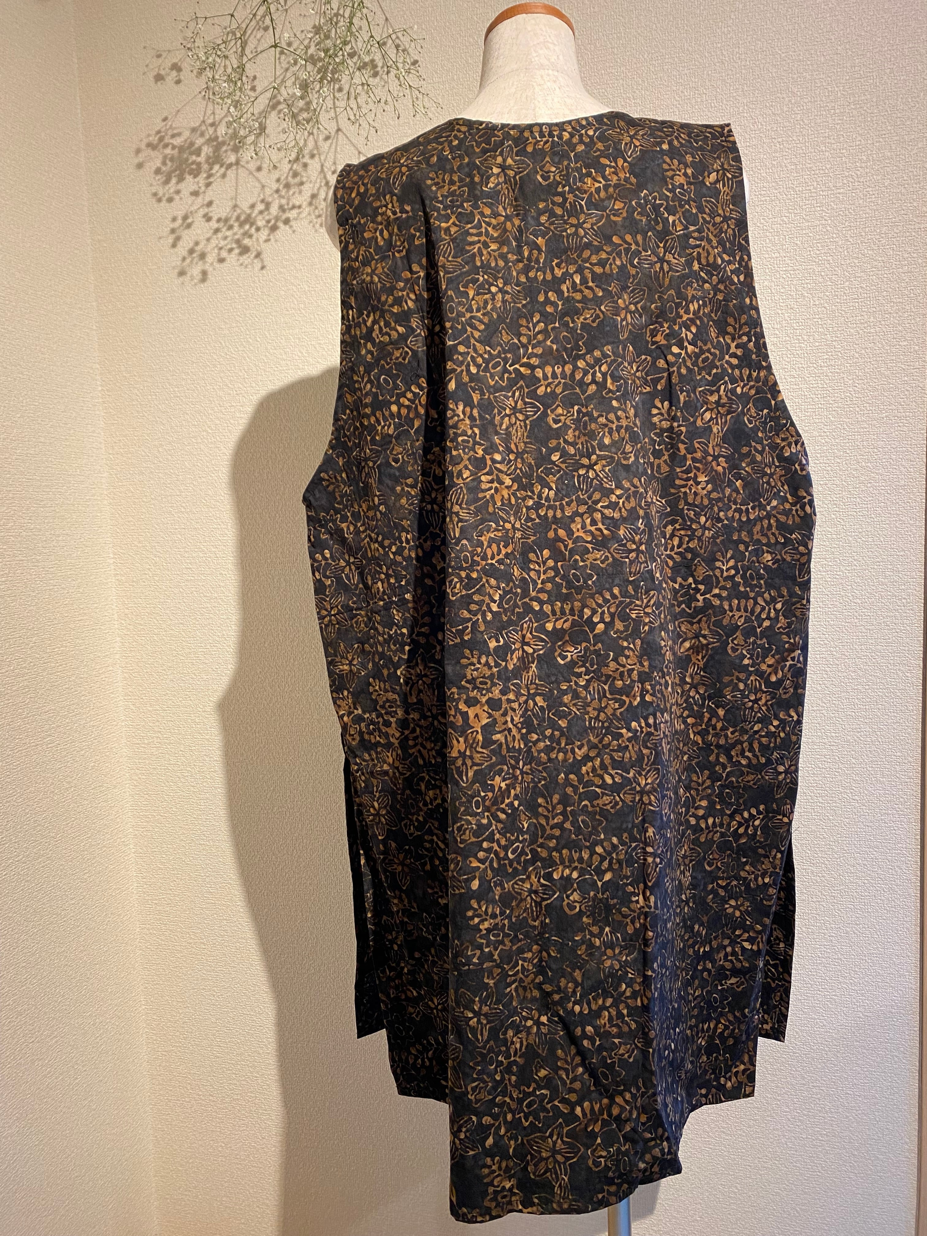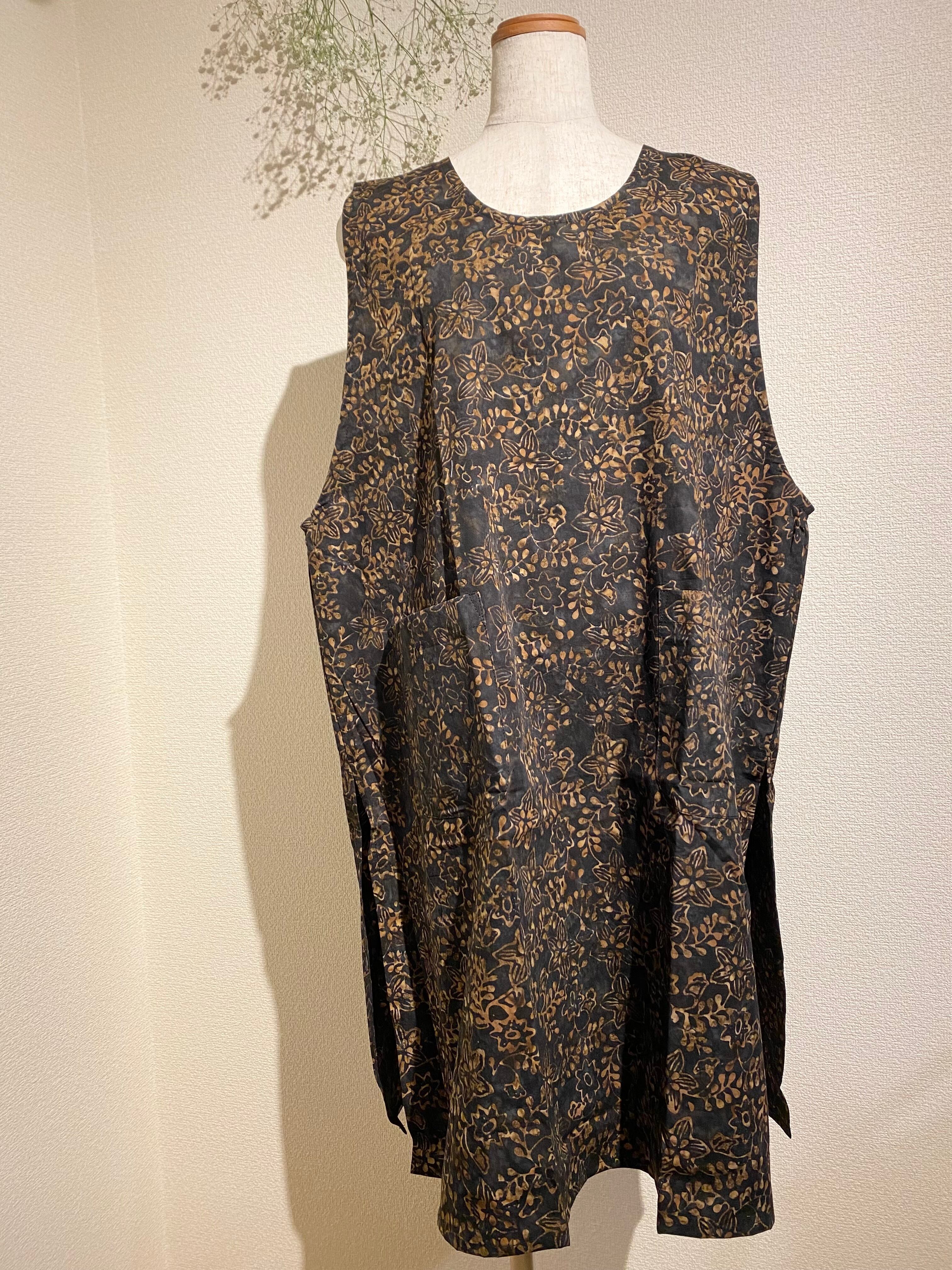 インドネシア、バリ島のチャップバティック(型押しろうけつ染め)を使用した生地でオリジナルエプロンドレスを制作しました!