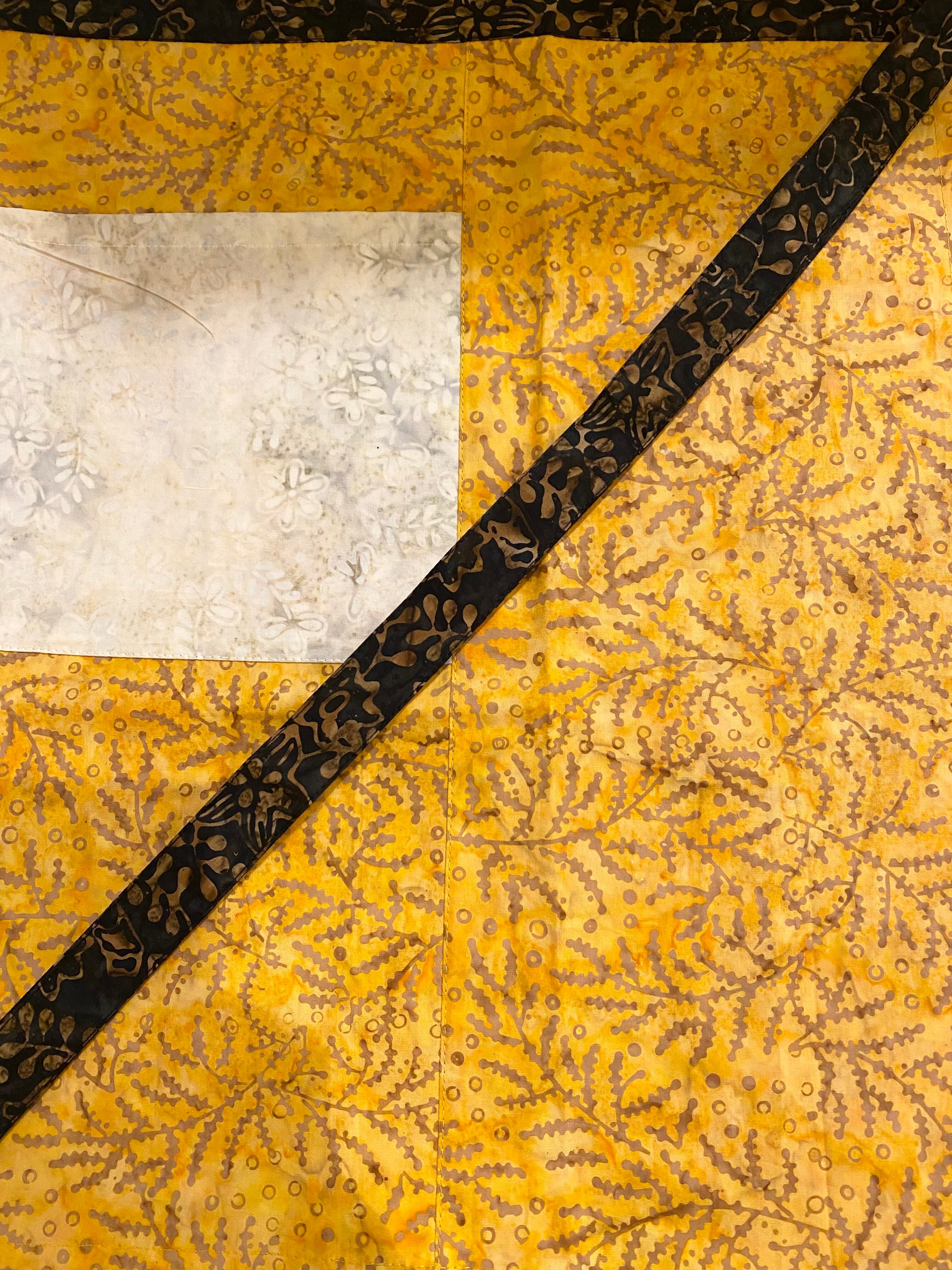 インドネシア、バリ島のチャップバティック(型押しろうけつ染め)を使用した生地でオリジナルカフェエプロンを制作しました!